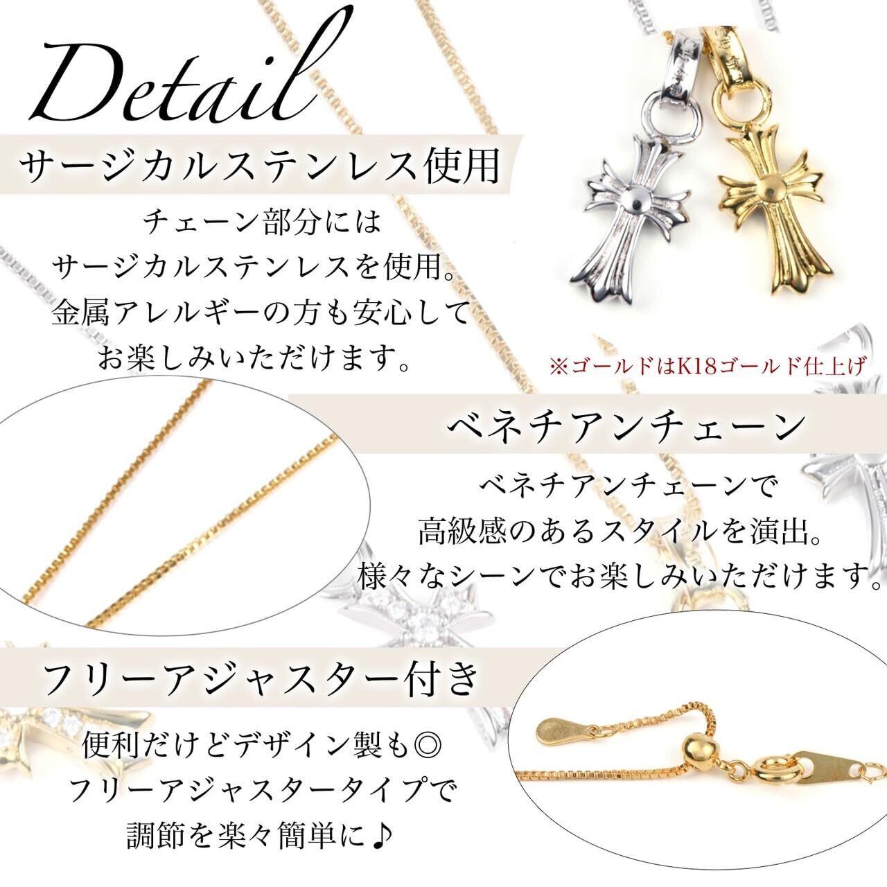 アネージュ クロス ネックレス メンズ レディース 人気 金属アレルギー対応 十字架 アクセサリー サージカルステンレス ベネチアチェーン50cmフリーアジャスター付き