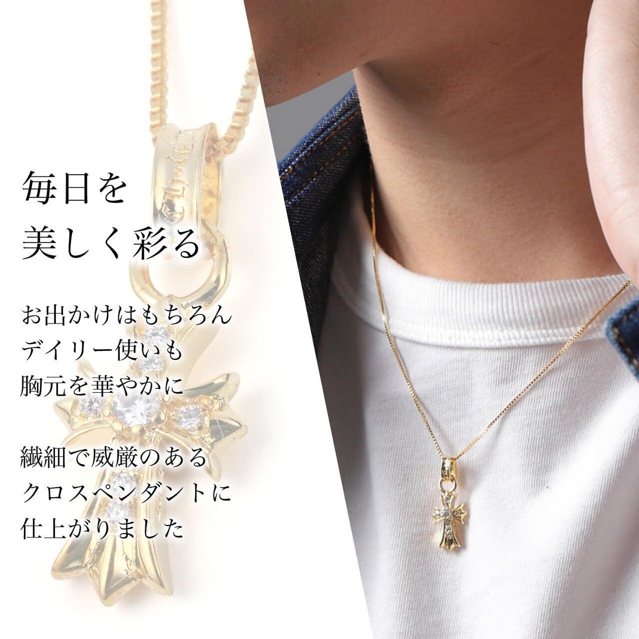【Aneige アネージュ】 スタイリッシュな十字架ネックレスで金属アレルギー対応で安心して使用できます。