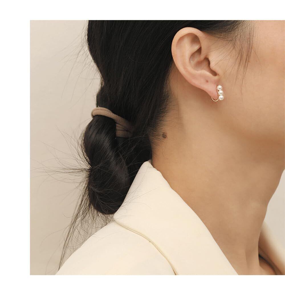 ノンホールピアス パールイヤリング 3連 痛くない ノンホール 可愛い おしゃれ ホワイト ピアス穴不要 プレゼント 誕生日 女性