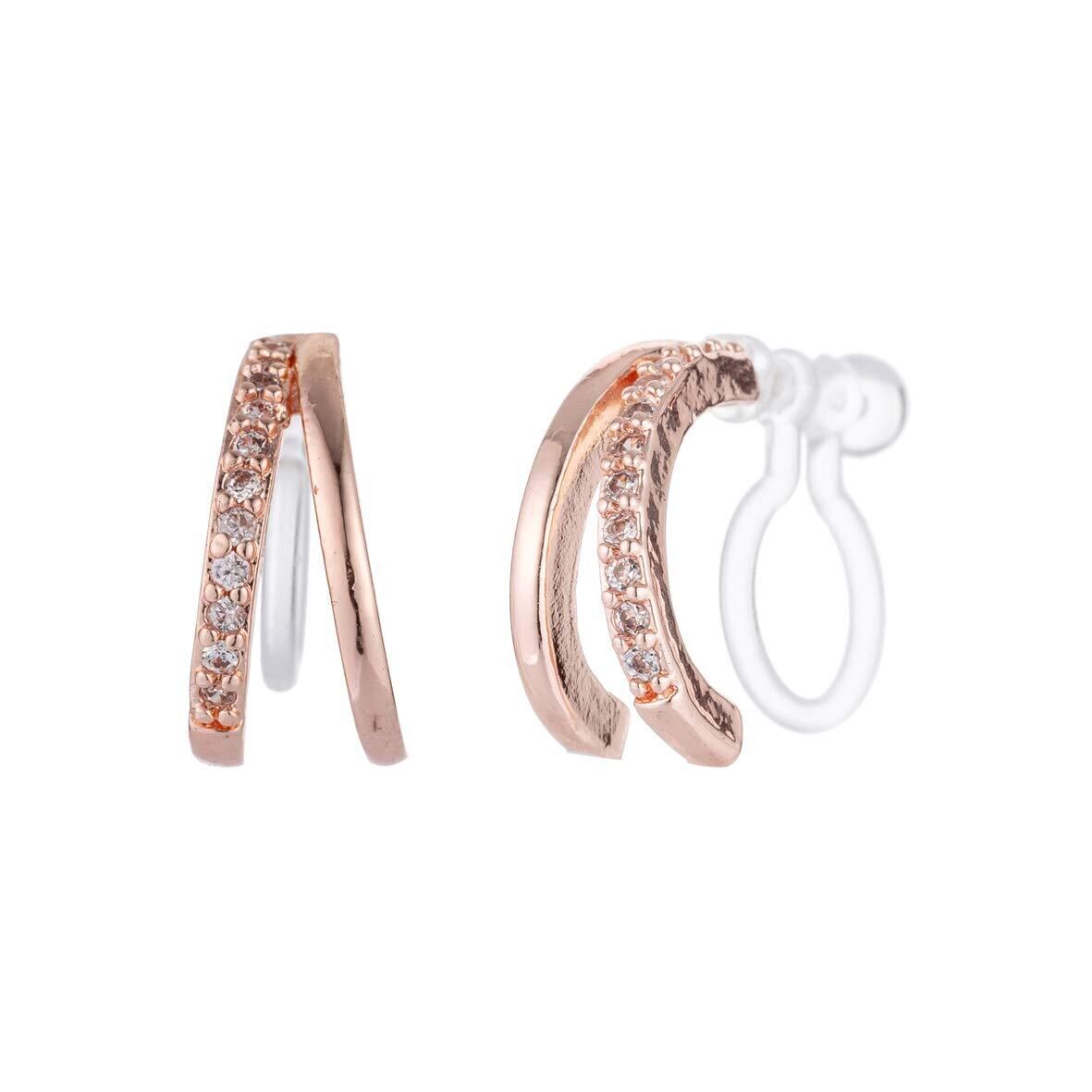 イヤリング ノンホールピアス CZ ピンクゴールド 14kメッキ レディース 樹脂