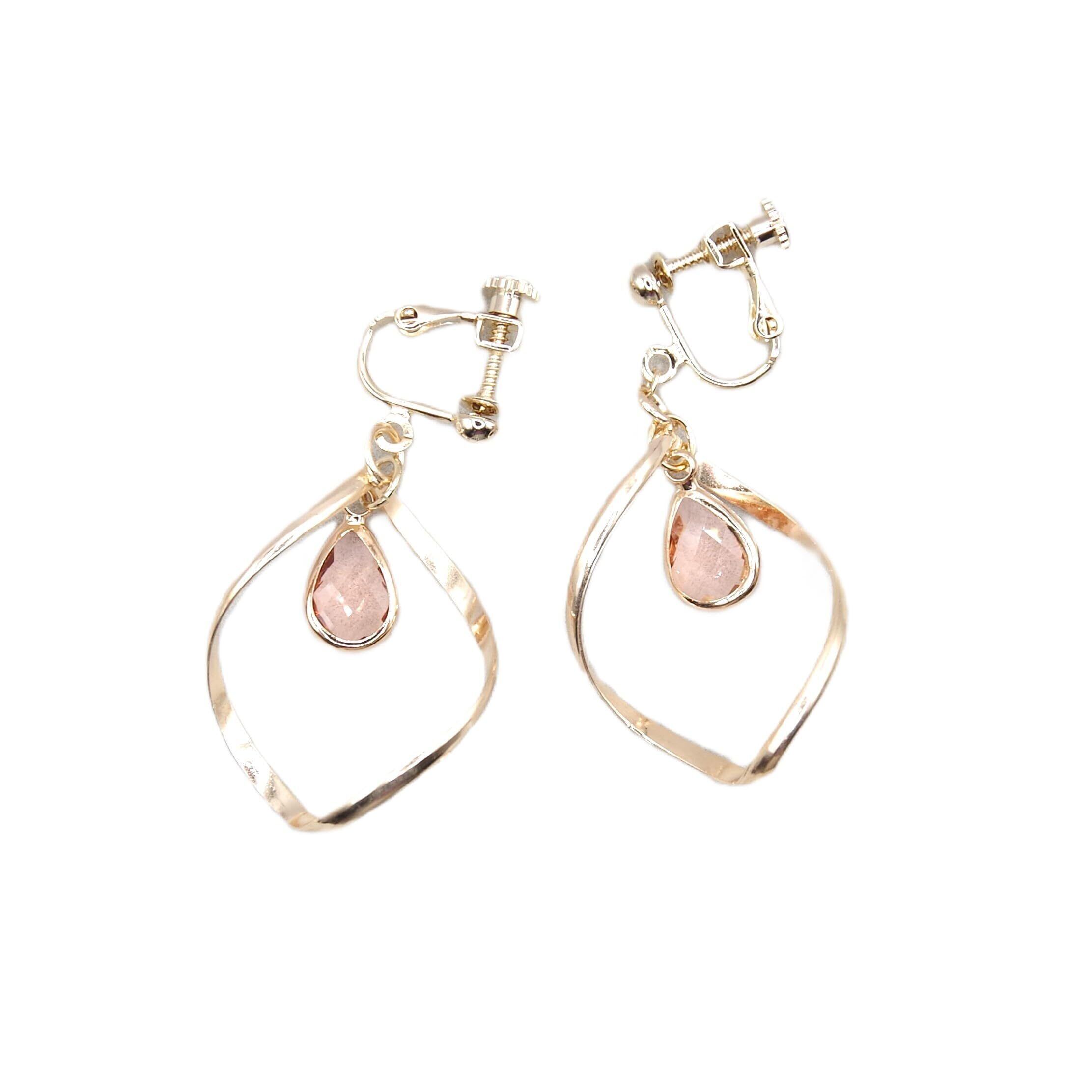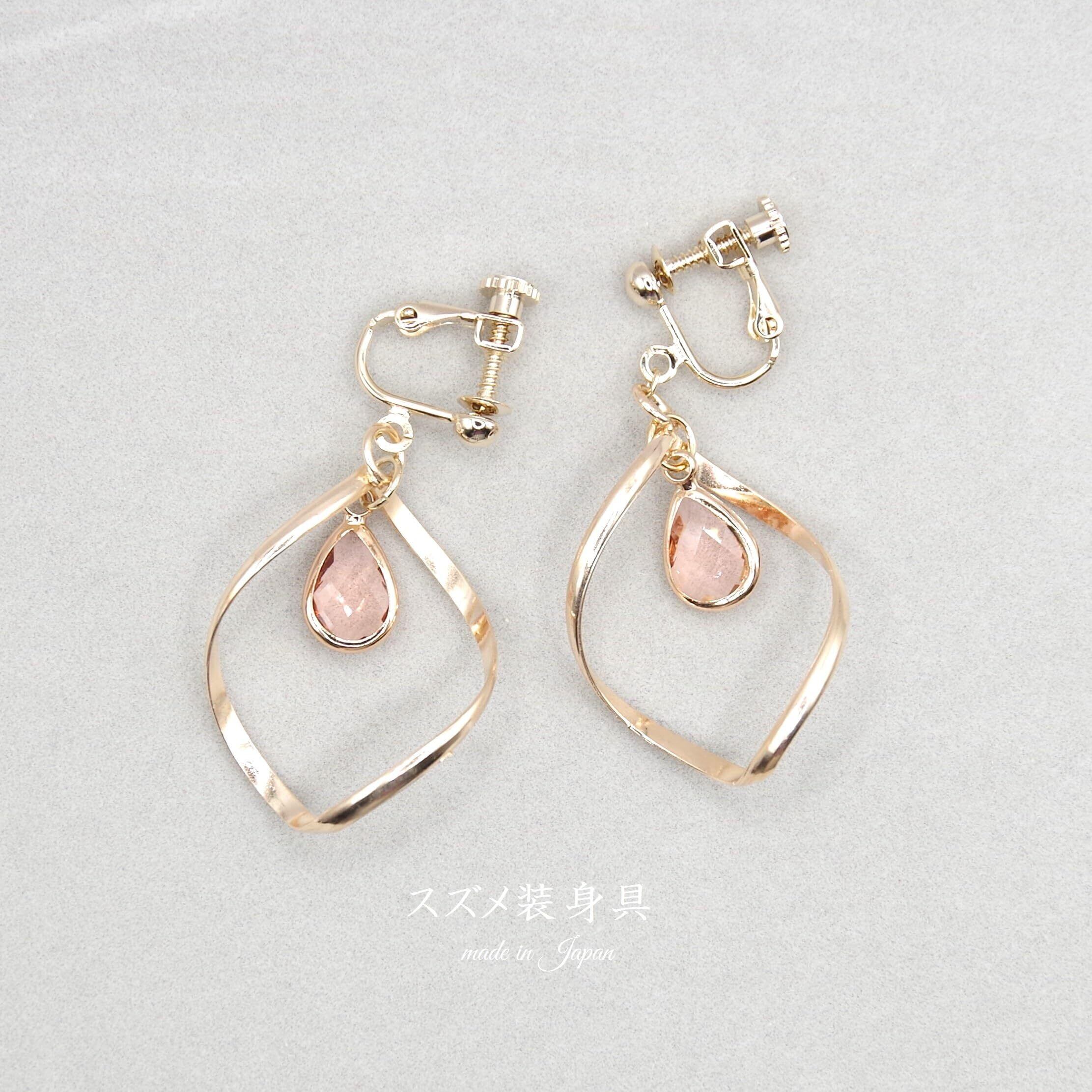 柔らかく女性らしい雰囲気を醸し出してくれるゴールドカラーのフープ。 ひねりの効いたフープの中で、上品なグリーンガラスが優しく揺れます。 とっても華やかで目を惹くアクセサリーです。 まあるい形をしているひねりチャーム。 実は右と左で3㎜ほど長さが違う工夫が施されています。 その為、右と左を入れ替えるとチャームが横向きになり、8の字のインフィニティマークのようにもなります。 2つの表情を楽しむことができます。 爽やかぐりーんの上品なワンポイントとして是非どうぞ。