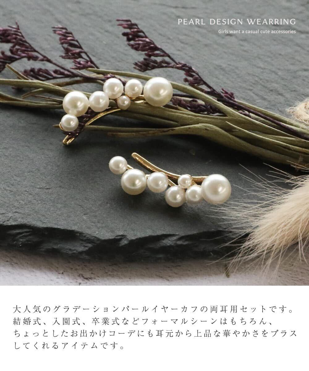JewelVOX イヤーカフ パール レディース イヤリング 金属アレルギー対応 ニッケルフリー (両耳用)