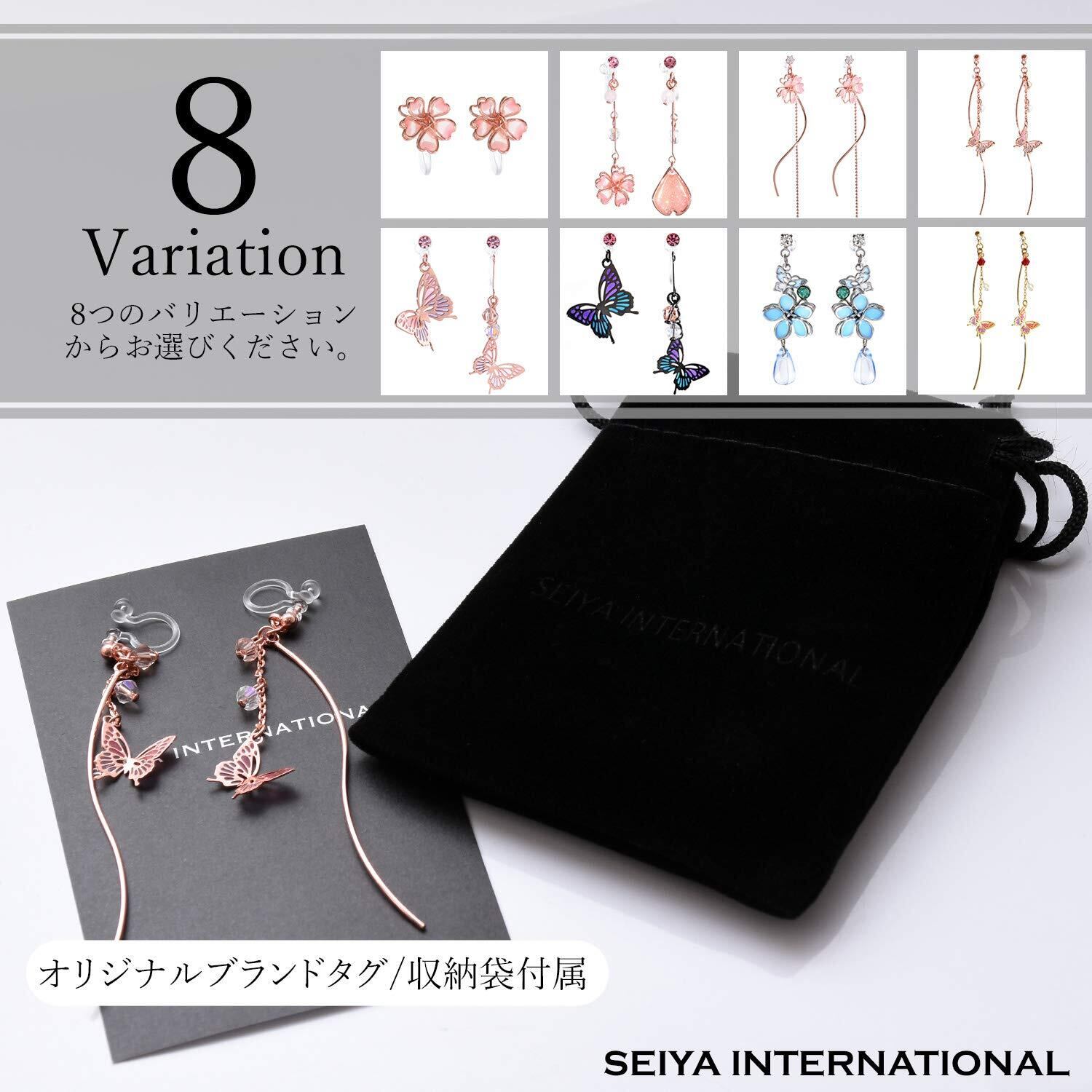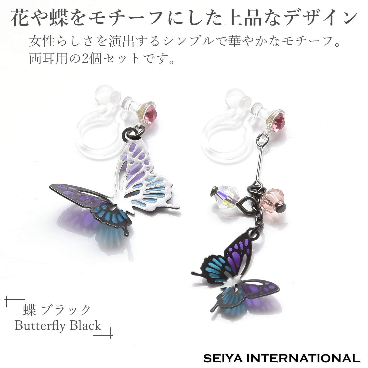 イヤリング レディース ピアス風 ノンホールピアス フェイクピアス イヤーカフ 揺れる 桜 花 蝶 ノンホール 樹脂 クリップタイプ 両耳セット