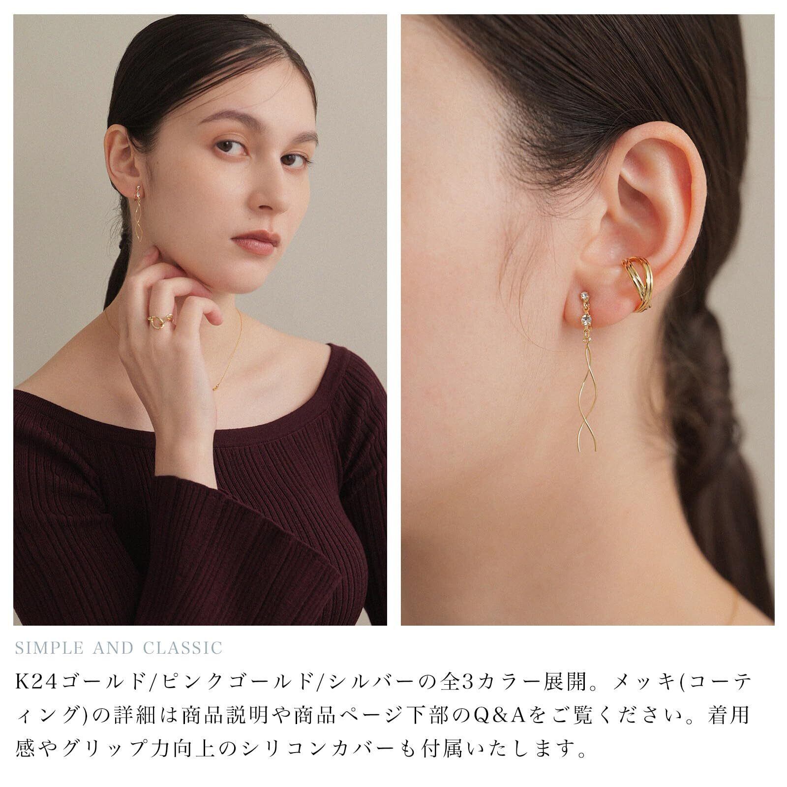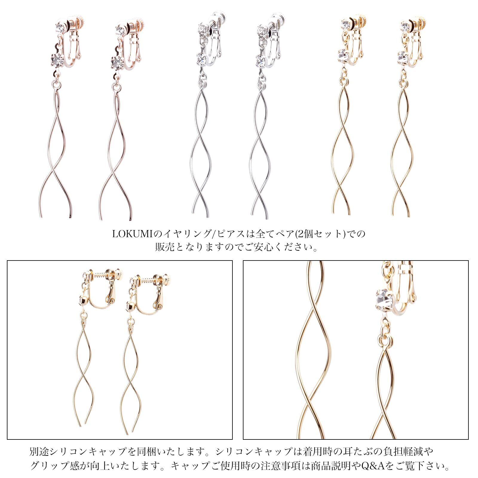 LOKUMI イヤリング 金属アレルギー対応 日本製 シリコンカバー付 ウェイビー スパイラル レディース シンプル 揺れる ロング シルバー ゴールド ピンクゴールド 金メッキ K24メッキ ネジ式 金属アレルギー対応イヤリング ne-81