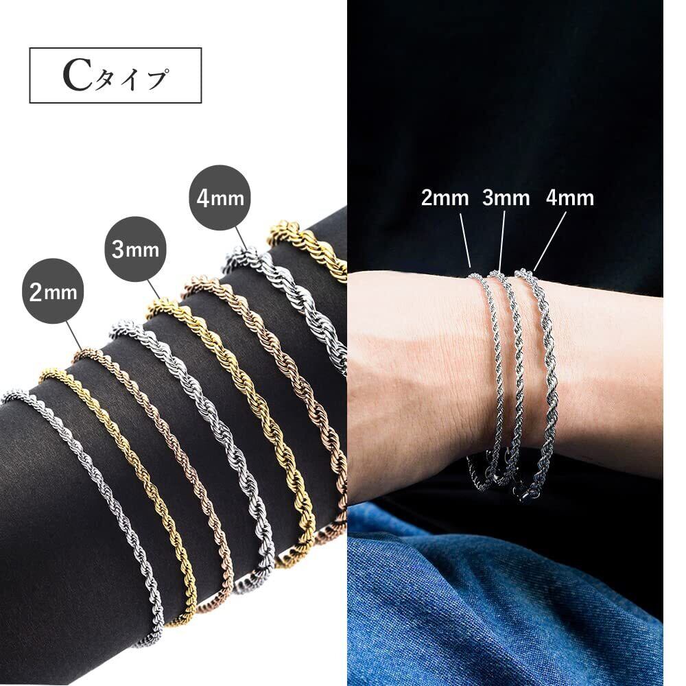 ブレスレット メンズ レディース つけっぱなし ステンレス ロープチェーン ロープ ロープブレスレット スクリューひねり ねじり ツイスト フレンチ スクリュー チェーンブレスレット チェーン ハワイアンジュエリー シルバー ゴールド ピンクゴールド