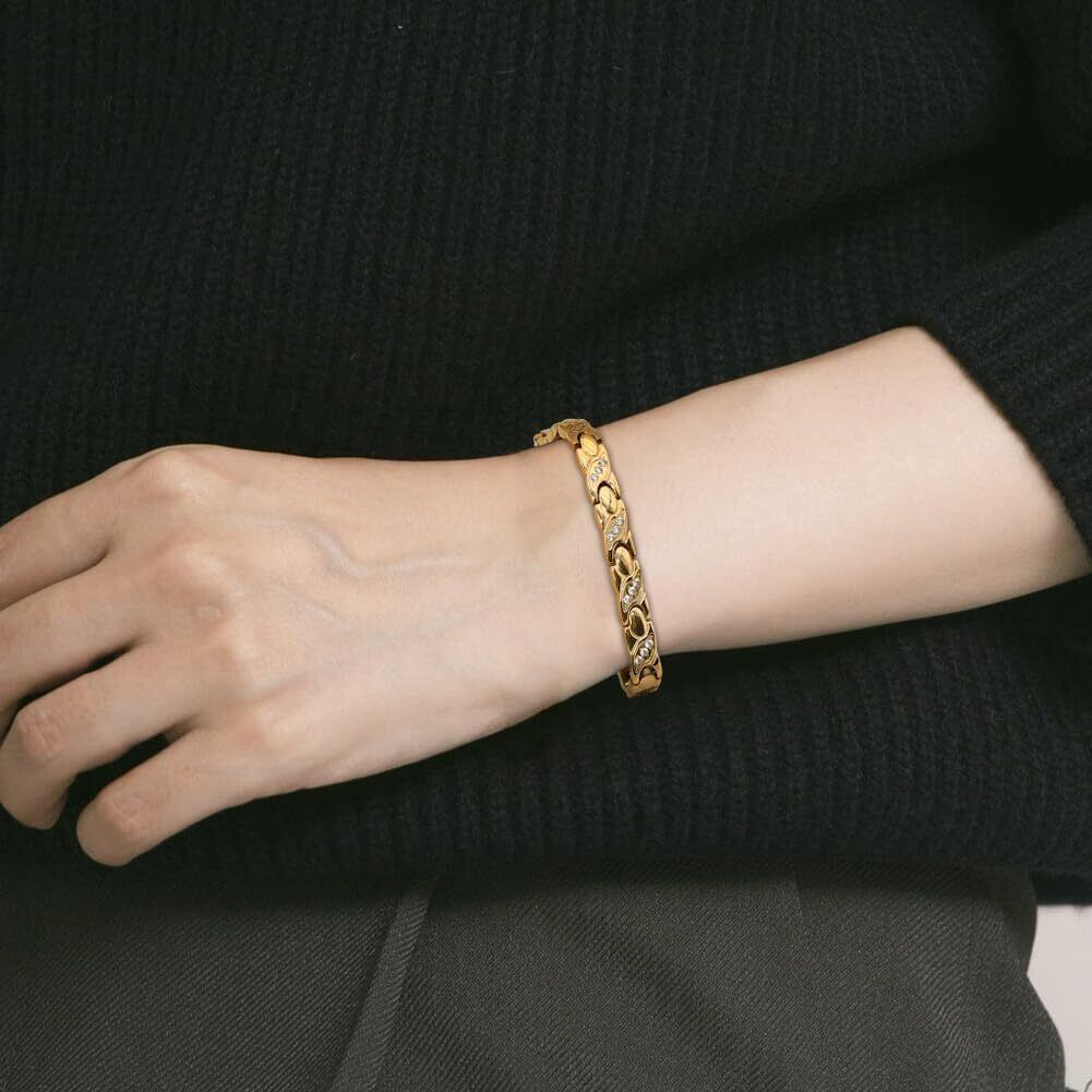 高品質のチタン鋼素材:生産素材は高品質のチタン鋼で作られており、健康ブレスレットの抗酸化性と耐摩耗性を確保し、肌に優しいです。 耐久性のあるステンレススチール素材により、ブレスレットは時代を超越したファッションアクセサリーになります。