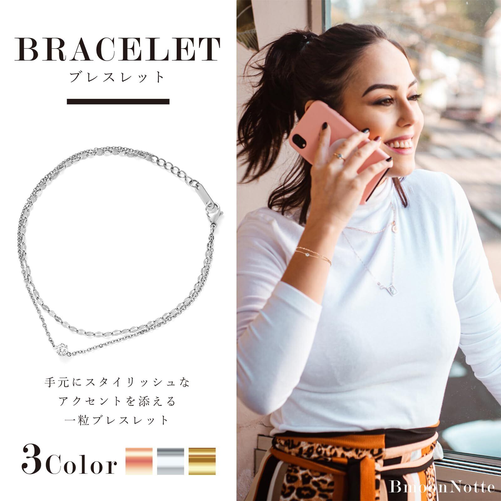 ブレスレット レディース ピンクゴールド ステンレス シンプル 二連 金属アレルギー対応