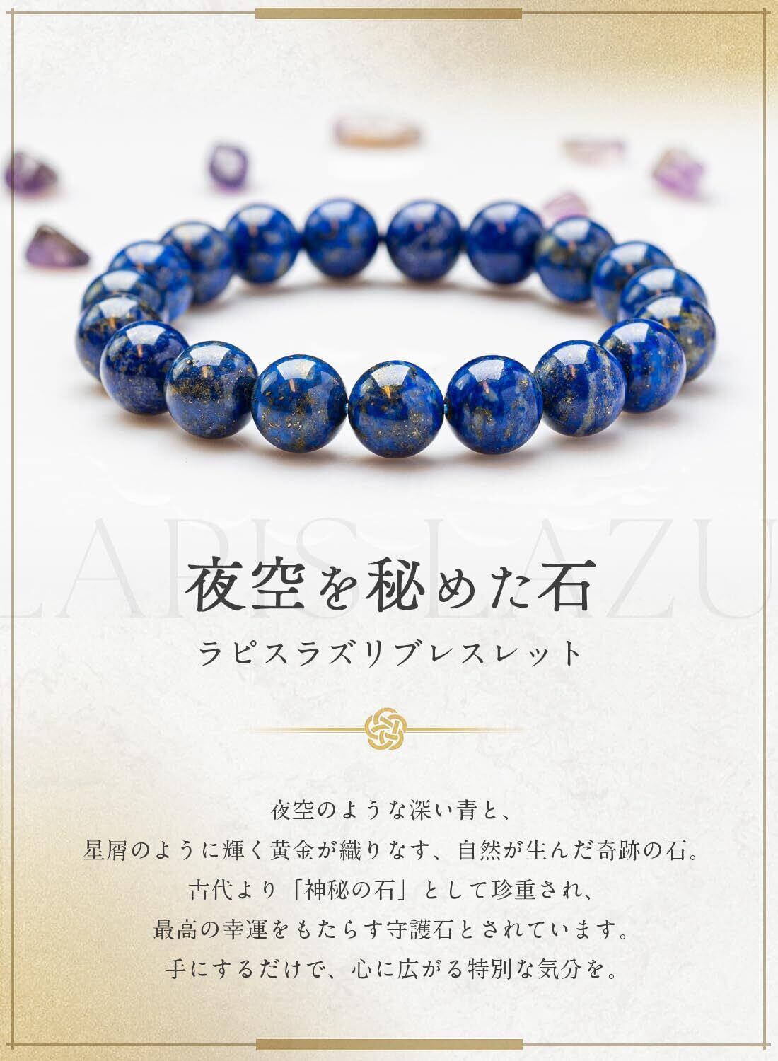 【ラピスラズリ】最高の幸運を呼び寄せてくれるとされる世界最古のパワーストーン。美しい群青色は夜空を。散りばめられた金色は星を意味するといわれています。 邪気を退け正しい判断力を高め、あらゆる強運を呼び寄せてくれるでしょう。