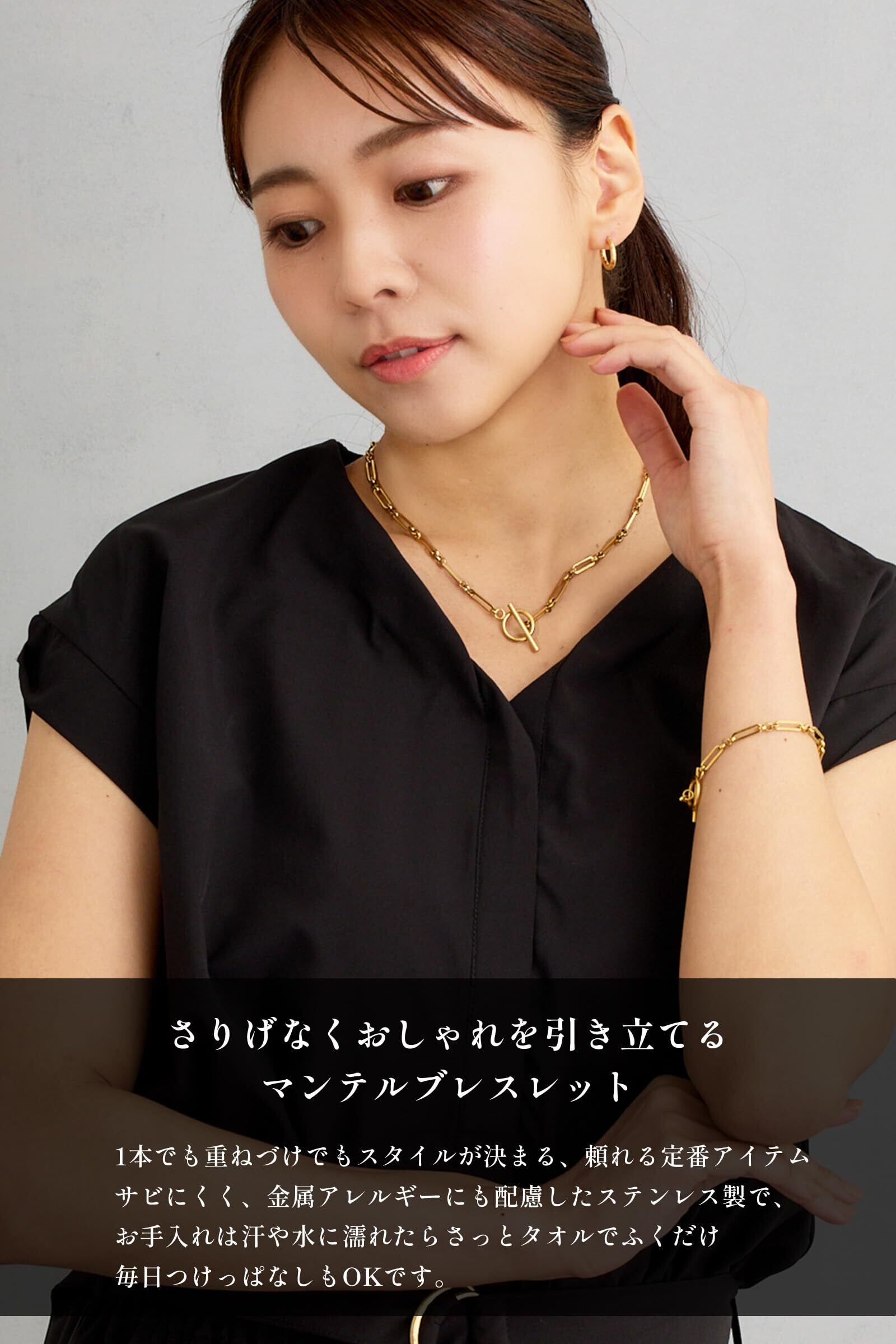 ブレスレット レディース マンテル マンテルブレスレット オーバル オーバルブレスレット ステンレス つけっぱなし シンプル 19.5cm