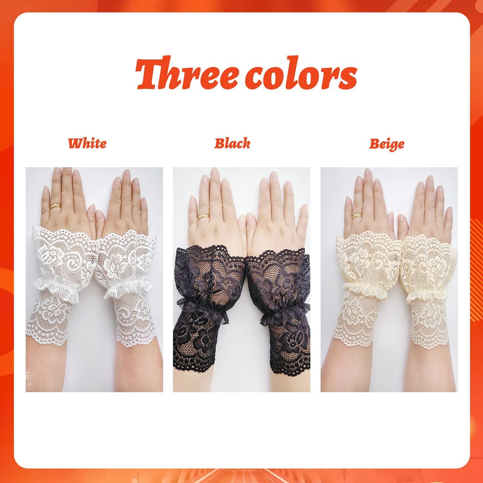 【レース付け袖】エレガントで華やかなレース付け袖です。花柄のレースはとても綺麗で、装着すると手も美しくになります。ホワイト、ブラック、ベージュの3色があり、服に合わせやすい。 【素材&サイズ】カフス全体はレース生地を採用しており、柔らかく、なめらかで快適です。縫製がしっかりしていて丁寧に仕上げます。サイズ:全長15-16cm。 【おしゃれなアクセサリー】ゴムが付いているので、弾力性があり、フィット感も良い。腕飾りはおしゃれで女性らしい雰囲気になり、気軽にお洒落を楽しんでいただけます。 【幅広い用途】リストバンドは日常着のアクセサリーとしてはもちろん、結婚式、写真撮影、ロリータファッション、ハロウィン、クリスマスなどのコスプレ小物にも最適です。 【贈り物】完璧な装飾用のつけ袖はプレゼントとしても喜ばれるアイテムとなっております。家族や友達、大切な人へのちょっとした贈り物としてぜひご利用下さい。