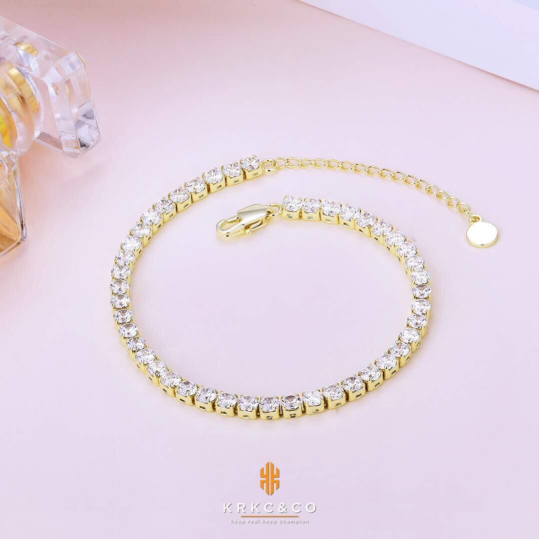 KRKC&CO アンクレット レディース 幅3/4mm テニスアンクレット ステンレス ダイヤストーン 21+5cmアジャスター ジルコニア テニスブレス キラキラ シンプル かわいい 足首 アクセサリー