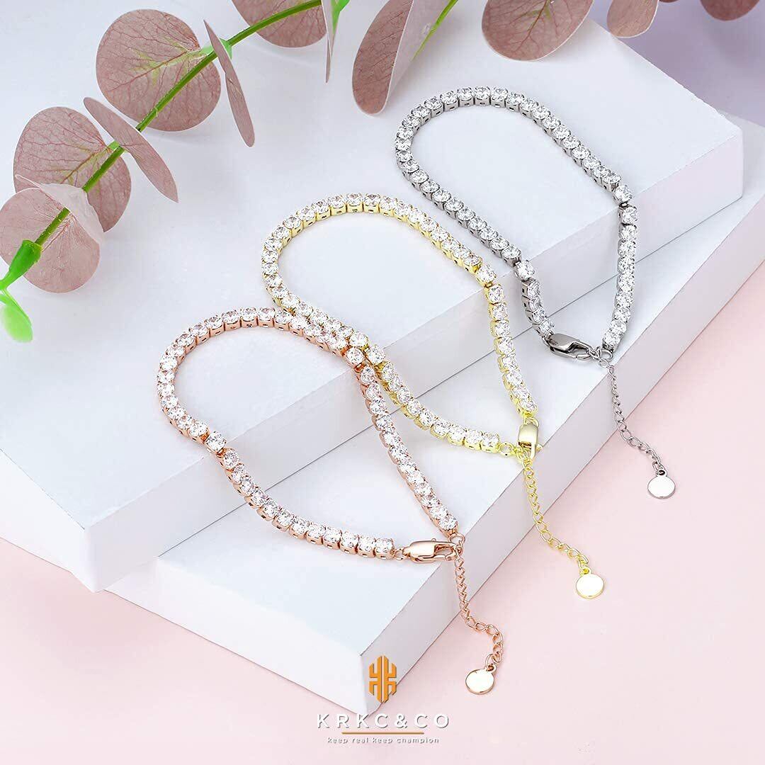 KRKC&CO アンクレット レディース 幅3/4mm テニスアンクレット ステンレス ダイヤストーン 21+5cmアジャスター ジルコニア テニスブレス キラキラ シンプル かわいい 足首 アクセサリー | 毎日発送✿はなまる