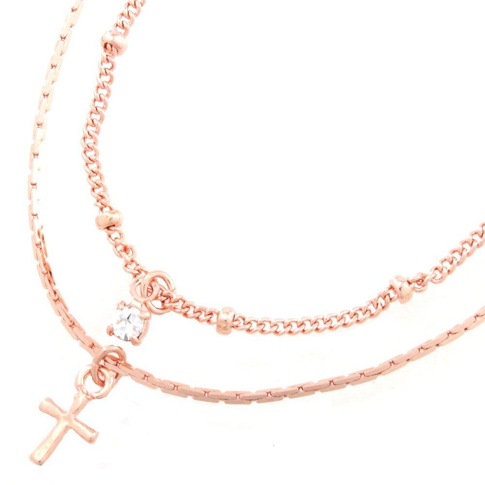 アンクレット クロス ストーン 2連 シンプル アクセサリー レディース 金属アレルギー対応 日本製 a9137