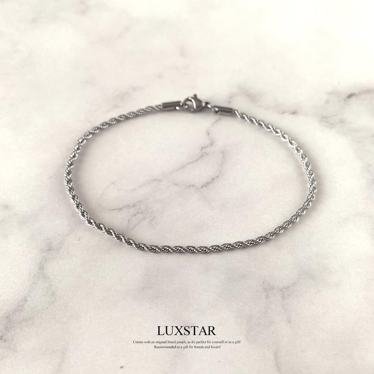 LUXSTAR アンクレット ツイスト チェーン 細め 金属アレルギー対応 ステンレス メンズ レディース 太さ 2mm