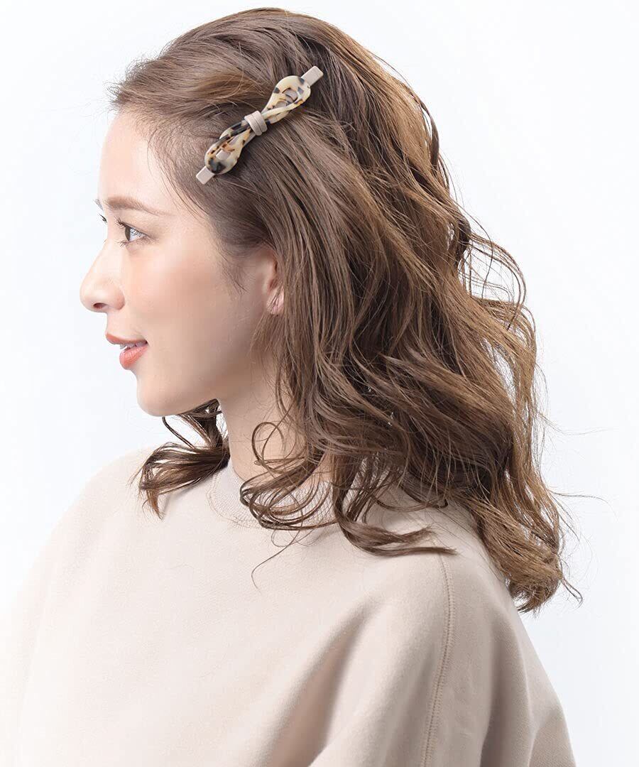 べっ甲風の柄とクラシカルな艶めきが上品なバレッタ。甘くなりがちなリボンモチーフもべっ甲柄なら大人っぽくまとまります。シーズンレスで使えるのも嬉しいポイント。シンプルなデザインなので、コーディネートに取り入れやすく、前髪を留めたり、ハーフアップのワンポイントなど、デイリー使いに活躍してくれそう。