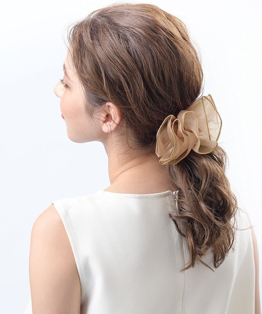 上品な透け感が楽しめるオーガンジー生地のフリルバナナバレッタ。ふんわりギャザーを寄せた華やかなデザインです。女性らしいスタイリングを日常に取り入れたい時や、結婚式・2次会など華やかなシーンにも映えるのでお勧めです。