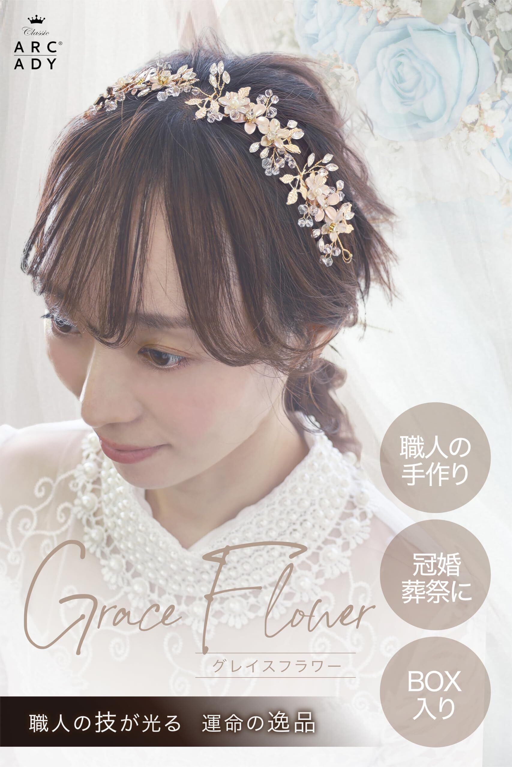 ARCADY ヘアアクセサリー 髪飾り 結婚式 ボックス入り 職人の手作り ヘッドドレス 大人 (グレイスフラワー)