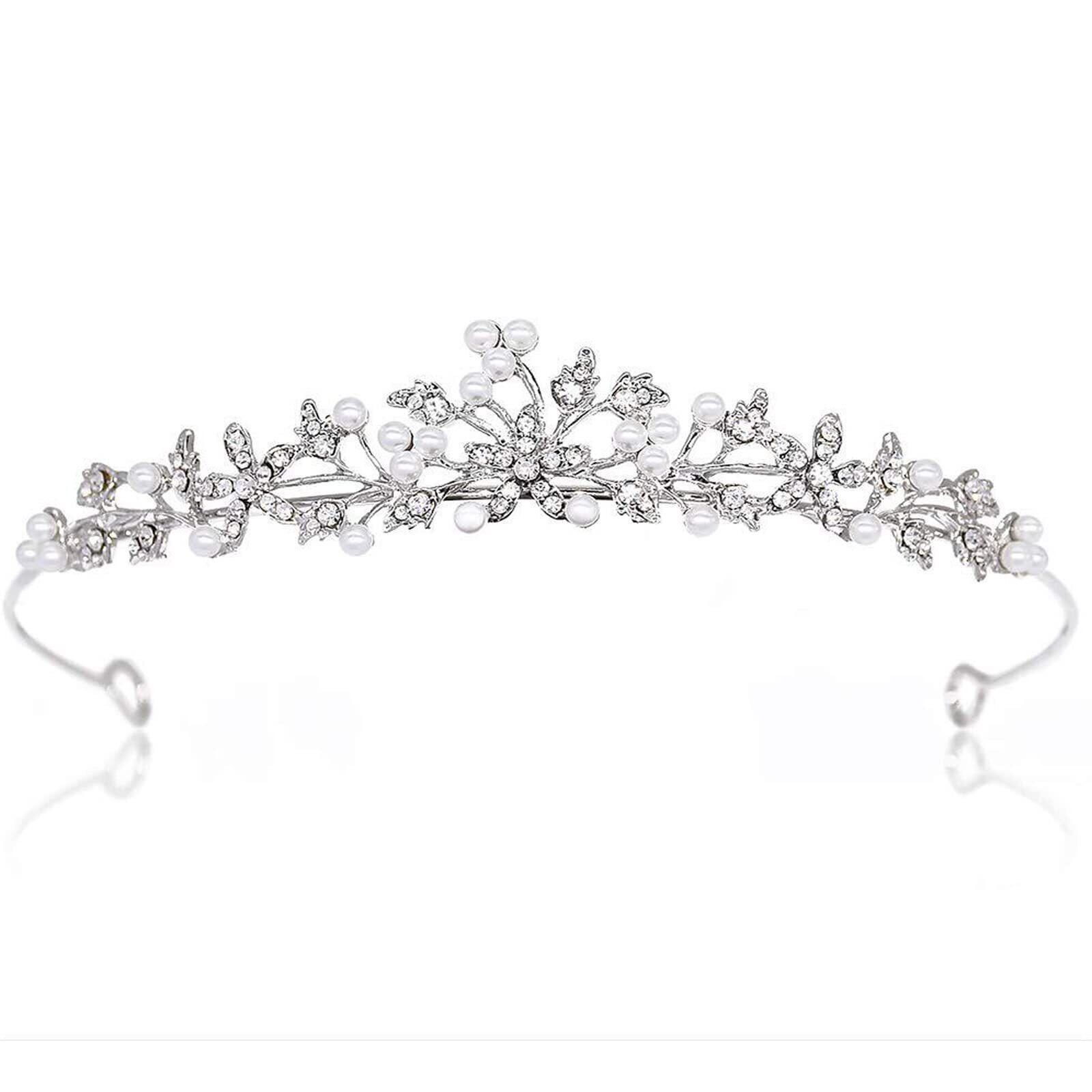 DFsucces 王冠 キラキラ 花柄 パール ラインストーン髪飾り 大人のユニセックス女性 ブライダル 卒業式 写真撮影 パーティー 誕生日 プレゼント