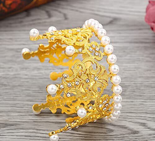 女性の女の子のレトロな男は、誕生日の結婚式アクセサリーのための真珠の王冠の花嫁ティアラケーキトッパー装飾