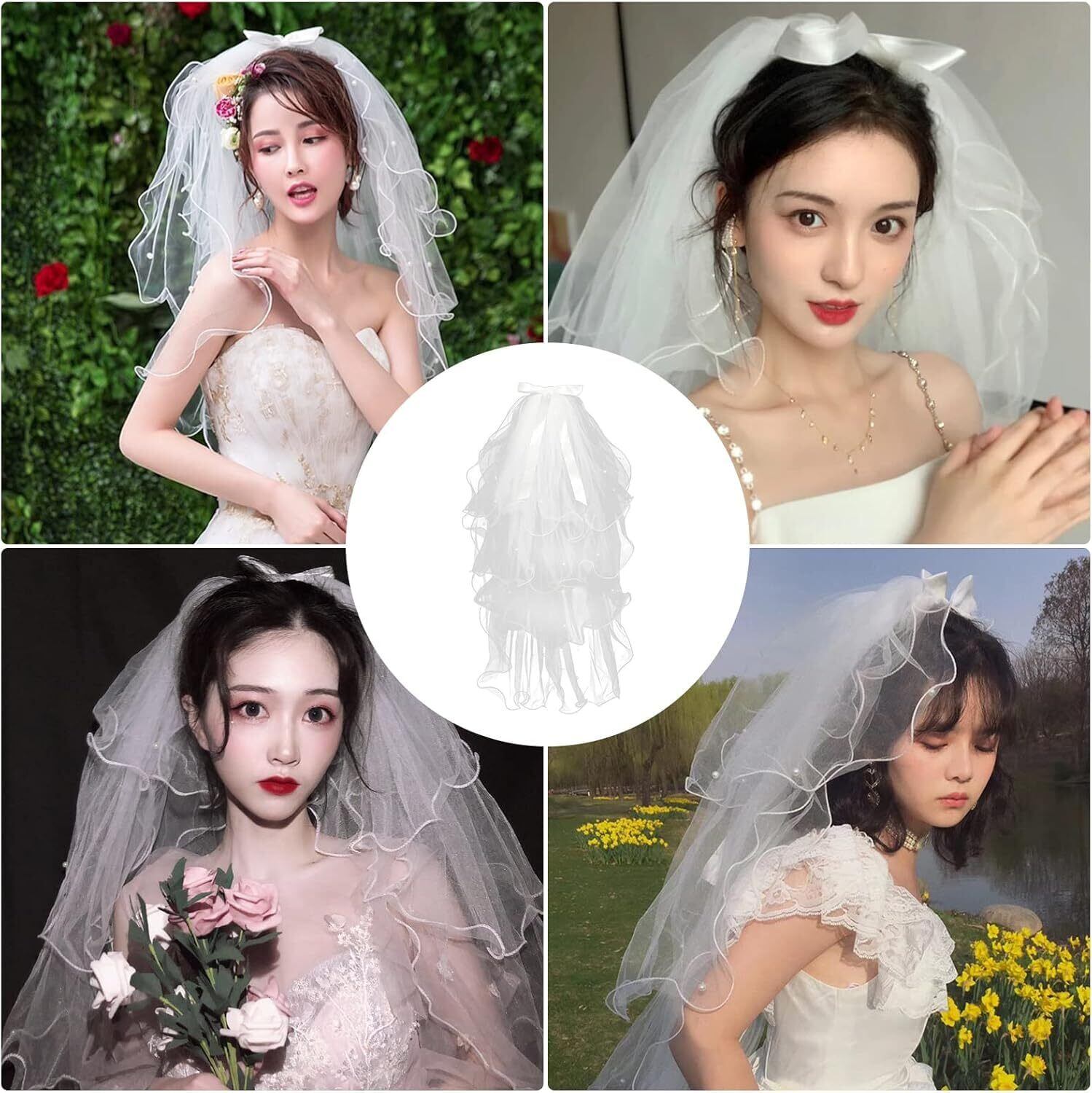 【ユニークなデザイン】この短いベールには、絶妙な白い人工真珠が点在し、暗黙のロマンス、ユニークな波状のエッジ、手作りの白い弓がいくつかの素敵な機能を追加し、フェミニンなファッションベール、あなたが最も美しい花嫁、最も美しいになることができます王女。 柔らかな白、控えめでエレガントな純粋なデザイン、シックな結婚式のベールはあなたの結婚式のための優れた装飾です。