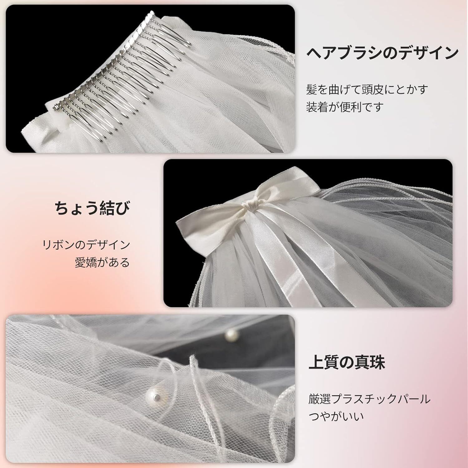 ウェディングベール ベール ヴェール レディース ヘアアクセサリー 2層ウエディングベール ウエディングドレスの飾り用品 蝶結び付き 写真 かわいい 花嫁 結婚式 60-80cm | 毎日発送✿はなまる