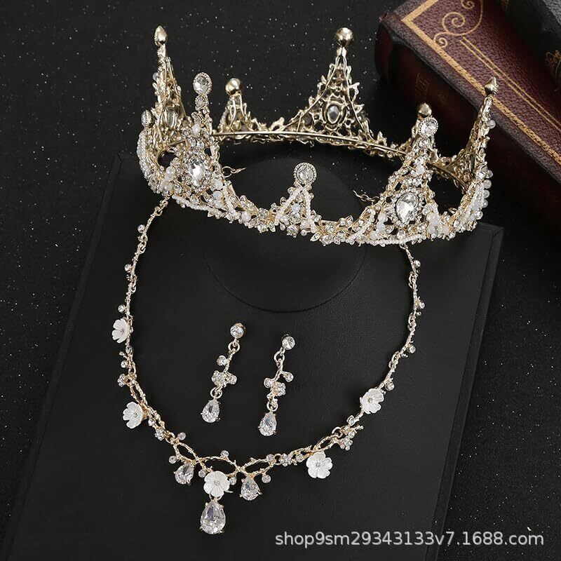 クラウンティアラ 3点セット ネックレス ジルコニア ヘアピン付 付け方解説書付き 結婚式 パーティ コスプレ ハロウィン