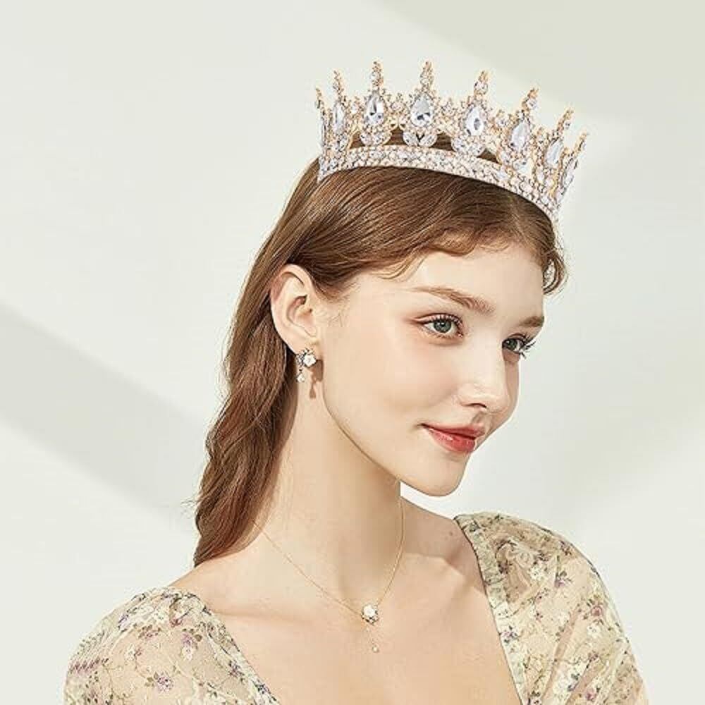 「素敵なデザイン」:クラウンティアラはバロックデザインを採用し、表面にはしずく型、丸型、葉型などの大小のラインストーンが散りばめられており、華やかな印象を与えます。光の下で眩しく輝き、さまざまな角度から光を反射することができ、ゴージャスでエレガントに見えます。