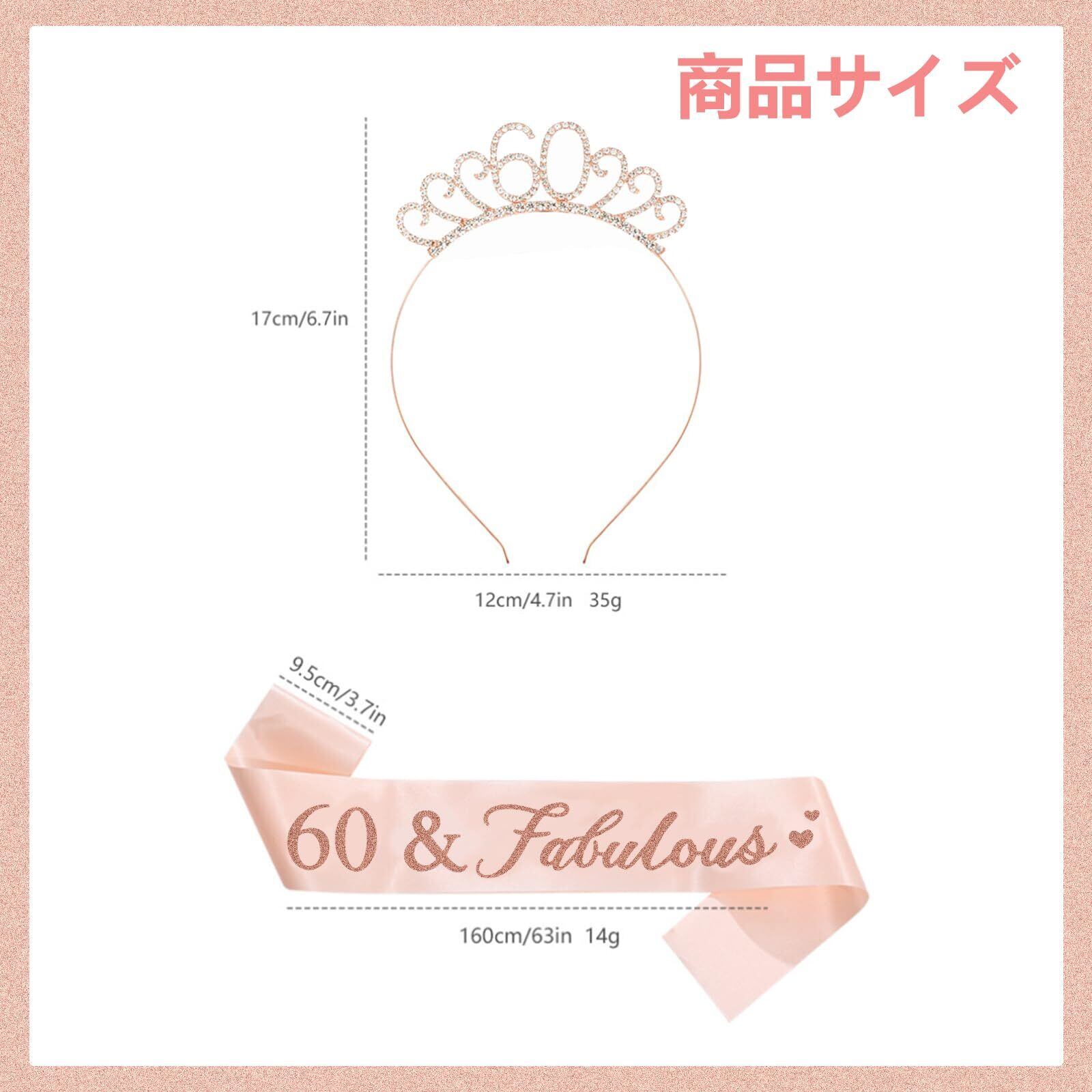 「商品仕様」素材:合金。セット内容:60歳王冠*1個、タスキ*1枚。タスキのサイズ:160x9.5cm