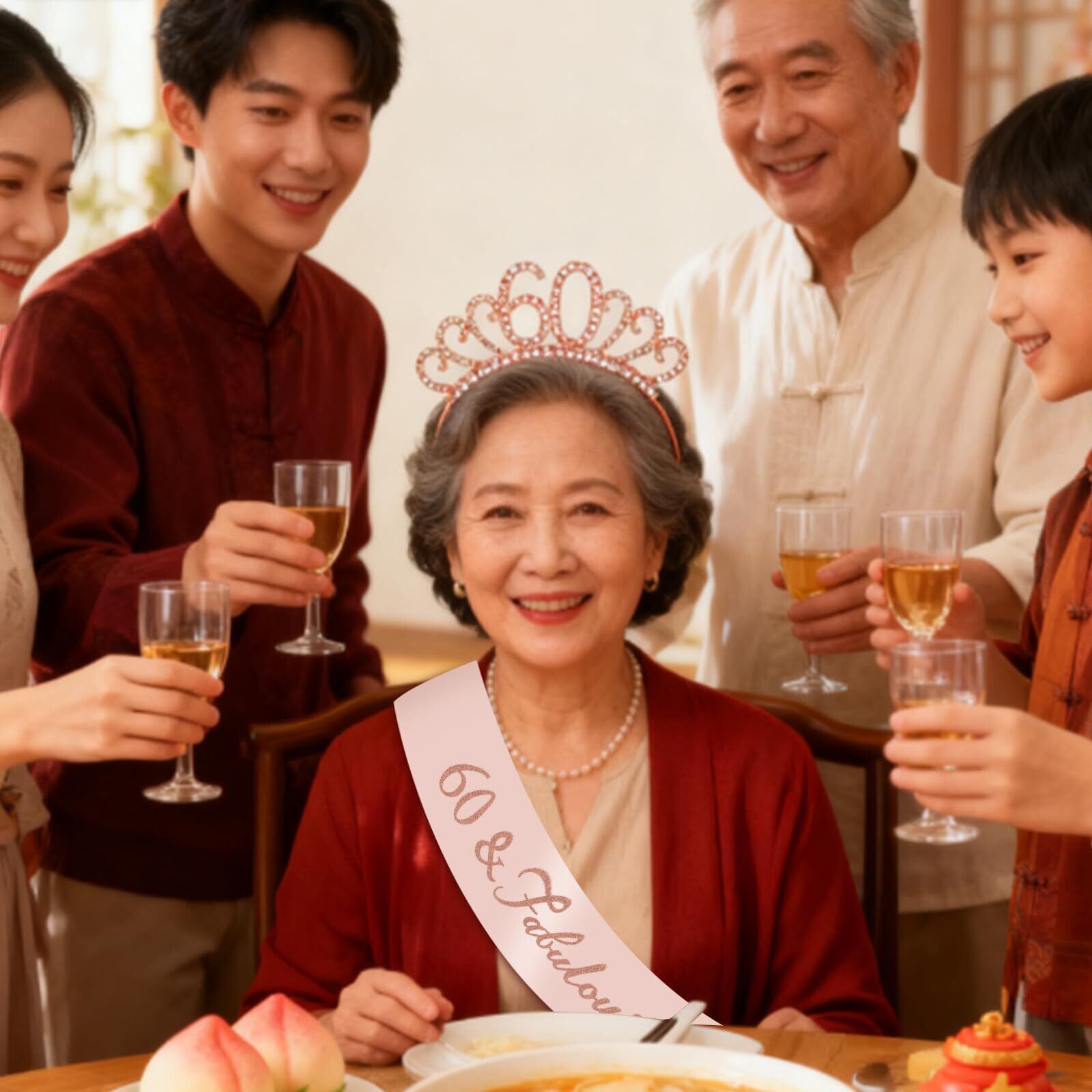 「主役になれる華やかさ」:ティアラとたすきの2点セットで、身に着けるだけでお祝いムード満点。還暦という節目を特別なスタイルで楽しく演出できます。派手すぎず上品なデザインなので、大人の女性にぴったり。お母さまや奥さまへのプレゼントにも喜ばれます。
