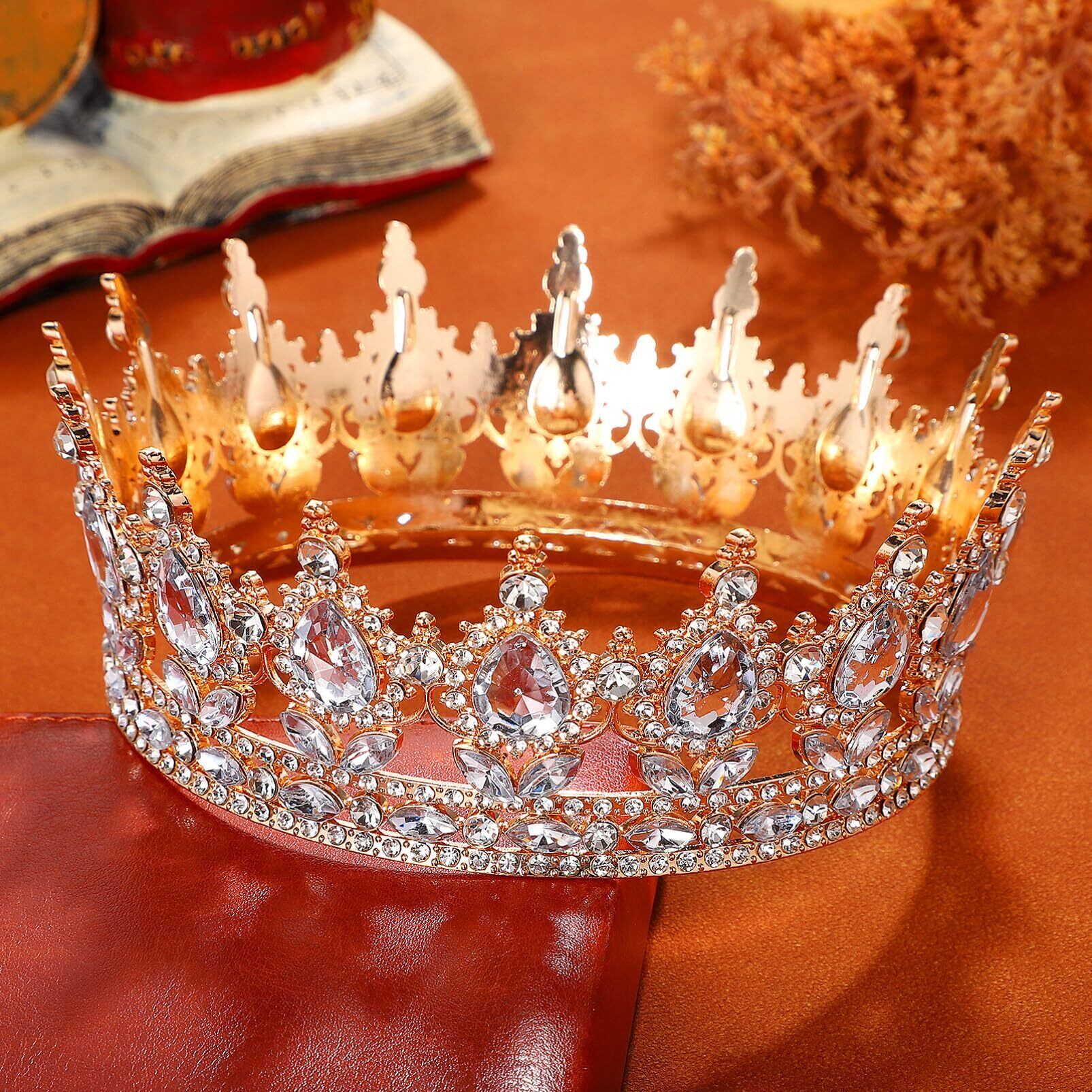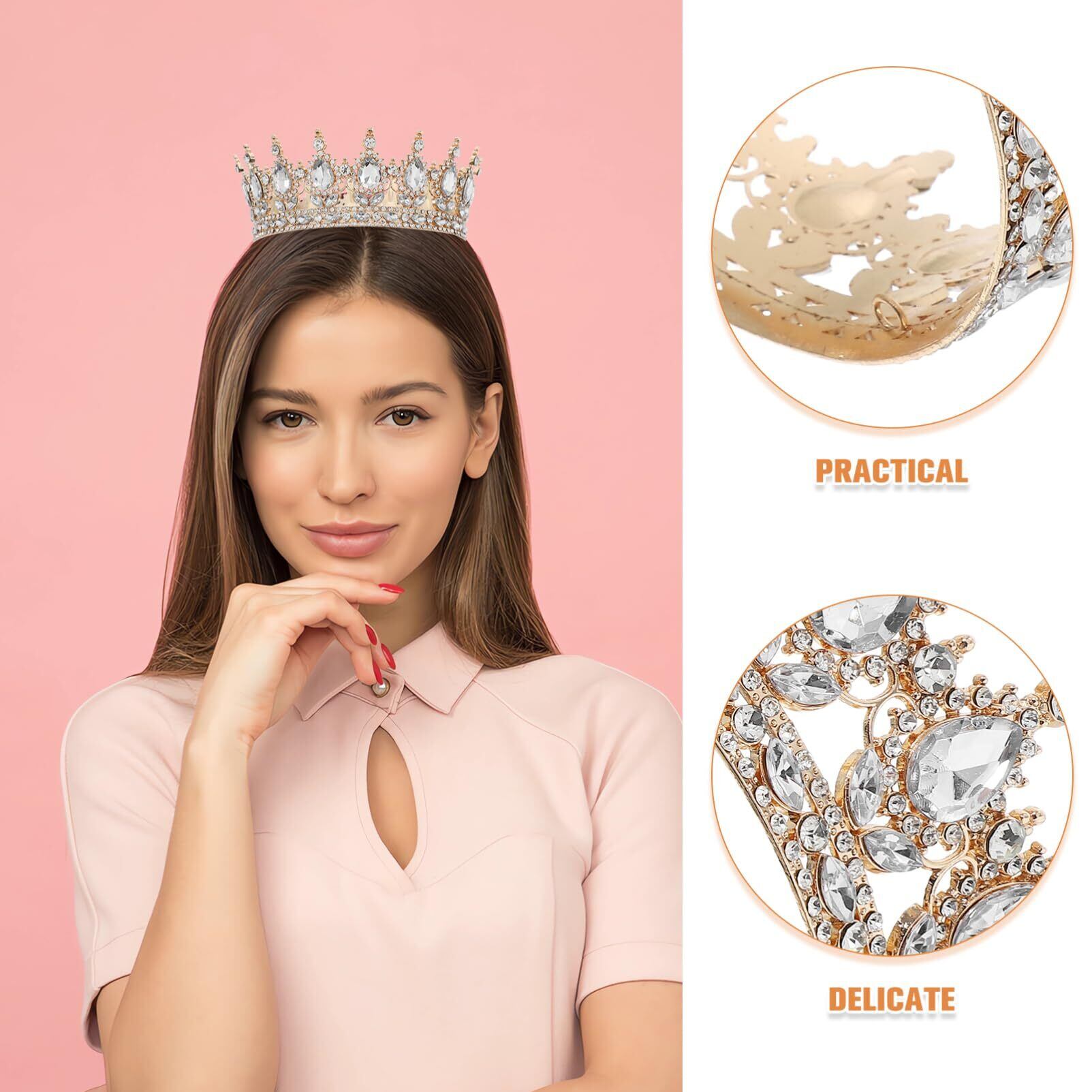 【王冠で “特別な日” を輝かせる】合金製のヨーロピアンレトロキングクラウン! 白いデザインに大粒の水钻が輝き、結婚式やパーティーで “主役感” を演出。“一生に一度の瞬間” を “王冠の輝き” で彩る。