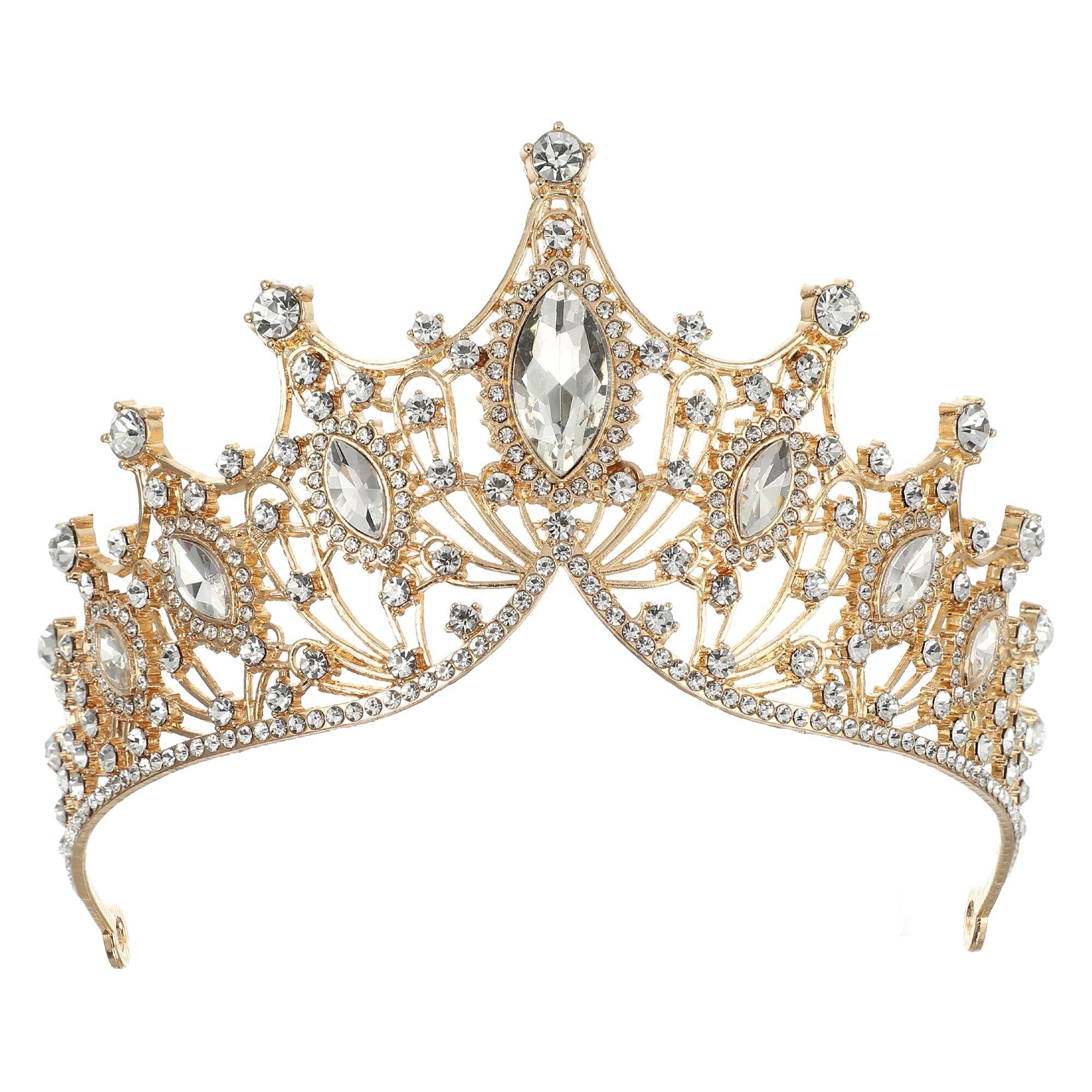 輝くヘアアクセサリー:クラシックなデザインで様々なヘアスタイルにマッチするクラウンティアラ。ラインストーンの輝きであなたを主役級の輝きに導きます
