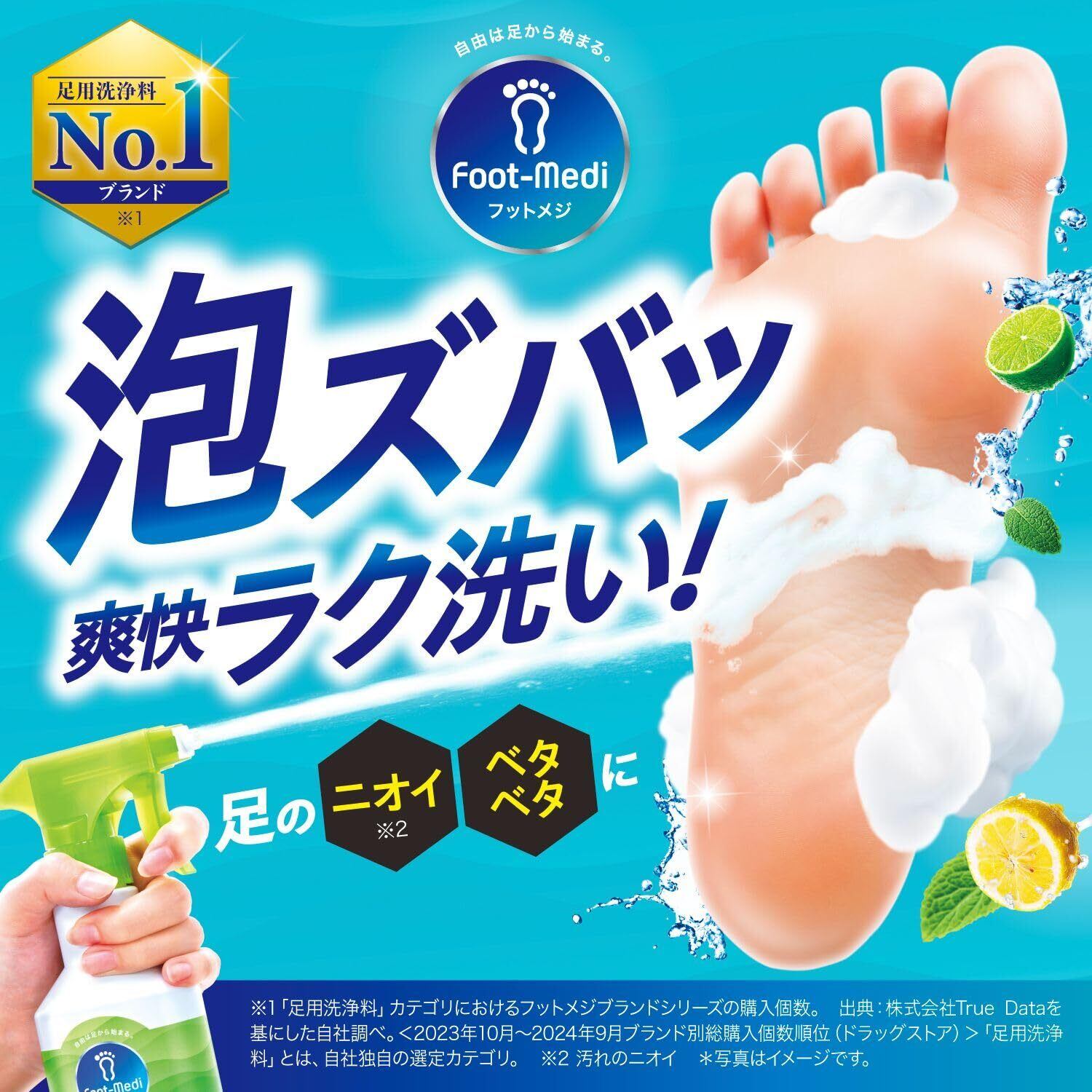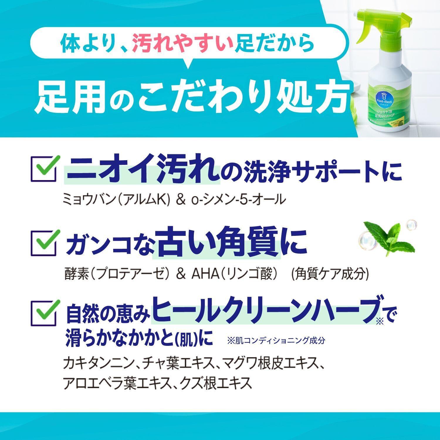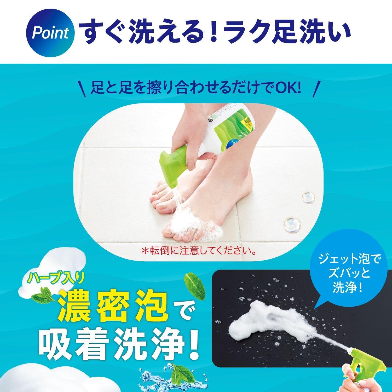泡スプレータイプの足用ソープ。簡単30秒のラク洗いで足爽快リセット。