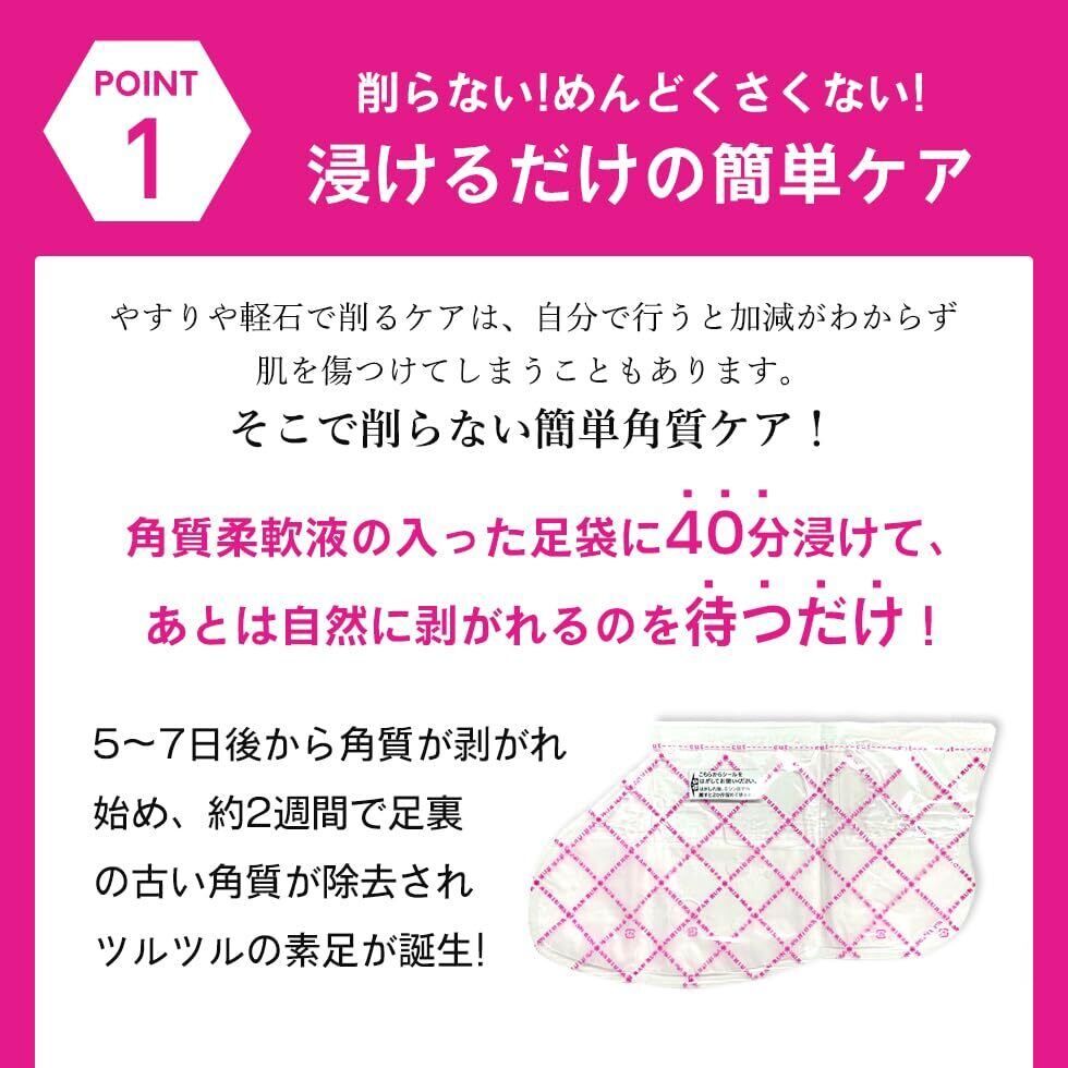 【POINT1】 40分間履くだけのスピードタイプで5~7日で角質が剥がれ始め、約2週間後にはつるつるスベスベの素足に!