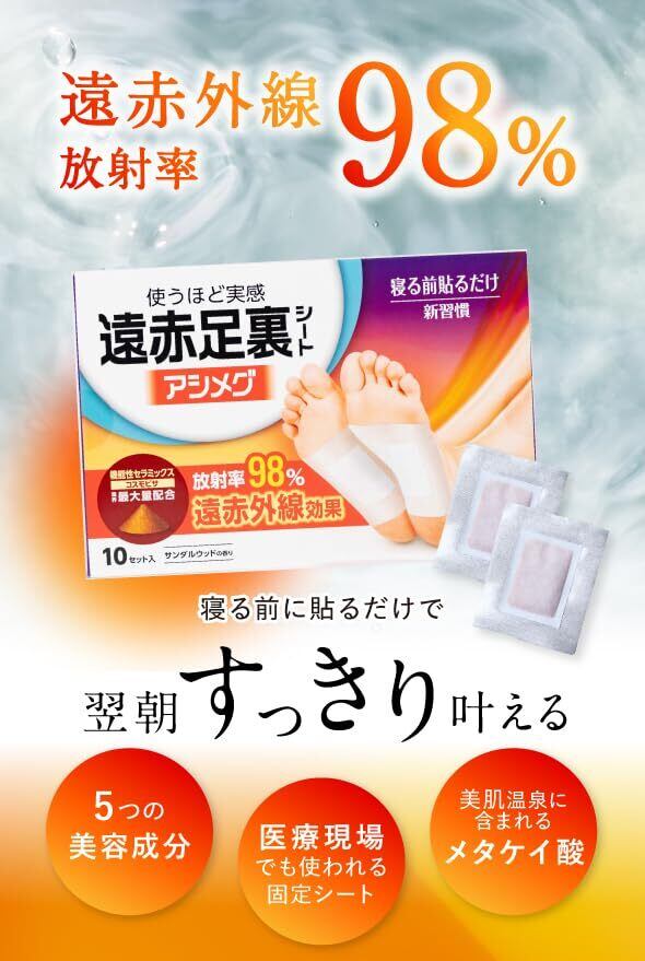 遠赤足裏シートアシメグ 2箱セット 1箱あたり10セット(20枚)入り 日本製 サンダルウッドの香り コスモビサ配合 遠赤外線 貼って寝るだけ 足裏用 足用シート ビヴォーネ Bivonne | 毎日発送✿はなまる