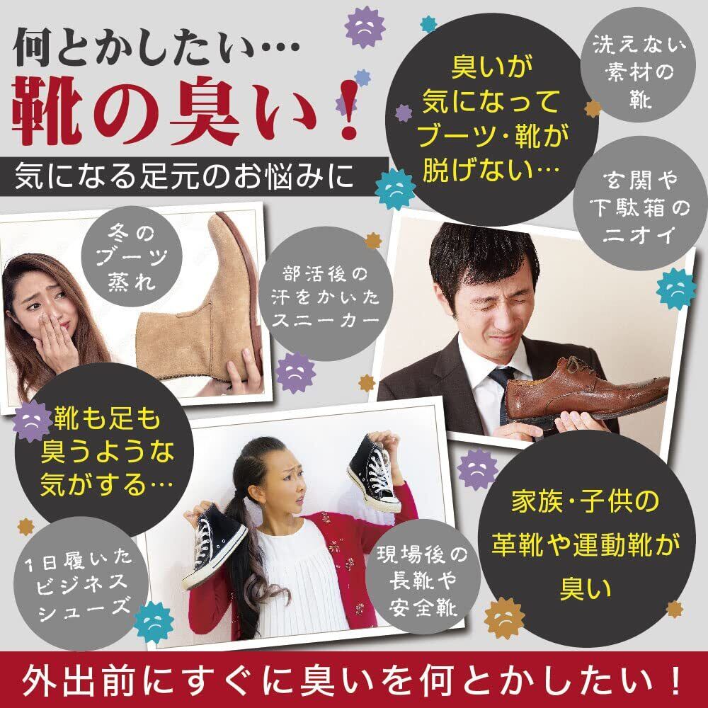 靴のニオイの原因菌の除去し、足元のお悩みを解決します!振りかけて履くだけの簡単ケア!