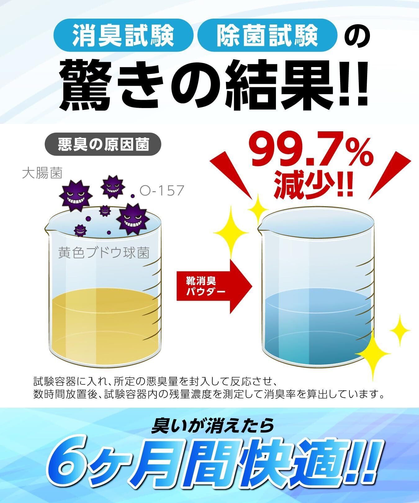 ✨日本の消臭試験・除菌試験でも驚きの結果が出ており、一度臭いが消えたら約6ヶ月間快適に過ごせます。