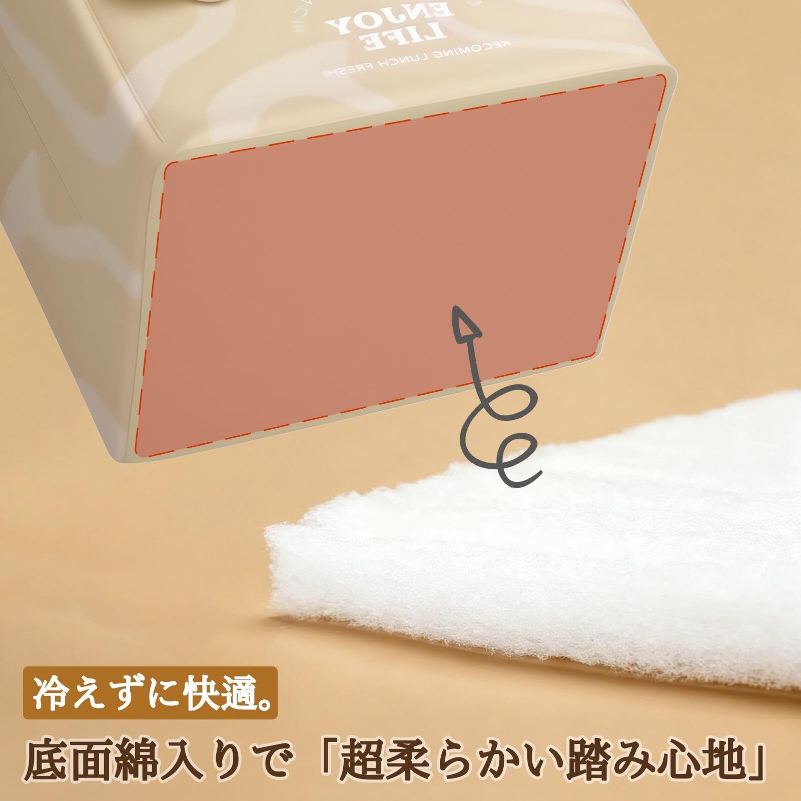 【6点サポート&超軟らか底】6枚の強力サポート板で、使用中は「蹴っても倒れない」 驚異の安定性を実現。さらに底部は分厚い綿層を採用し、「踏み心地最高」 と表現される極上の柔らかさ。冷たい底で足元が冷える心配もありません。