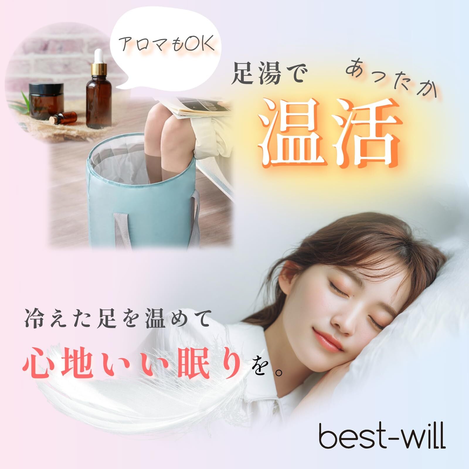 【オールシーズン使える多機能折りたたみバケツ】 冷え性対策の足湯や、夏場のアイシングバケツとして一年中活躍。保温・保冷どちらにも対応し、アウトドアや旅行、防災用の簡易洗面器としても使える万能フットバスバケツです。