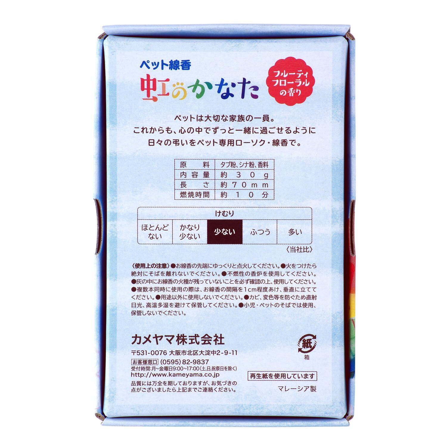 カメヤマ ペット線香 虹のかなた フルーティフローラルの香り 約30g 約120本 ペット供養 お線香 お香