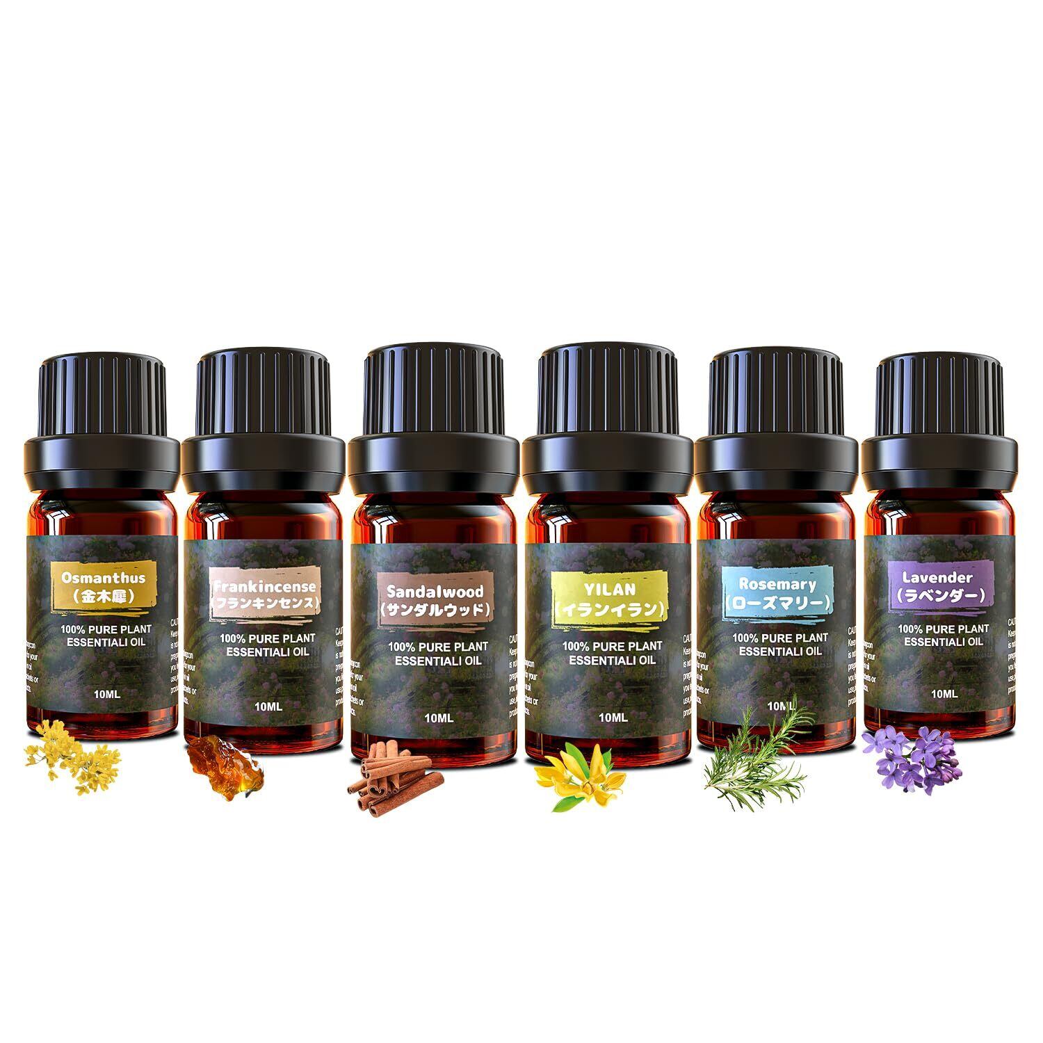 【6種セット】香り:ラベンダー/イランイラン/金木犀/フランキンセンス/ローズマリー/サンダルウッド(Lavender/Ylang-ylang/Osmanthus/Frankincense/Rosemary/Sandalwood)10ml×6本セット。