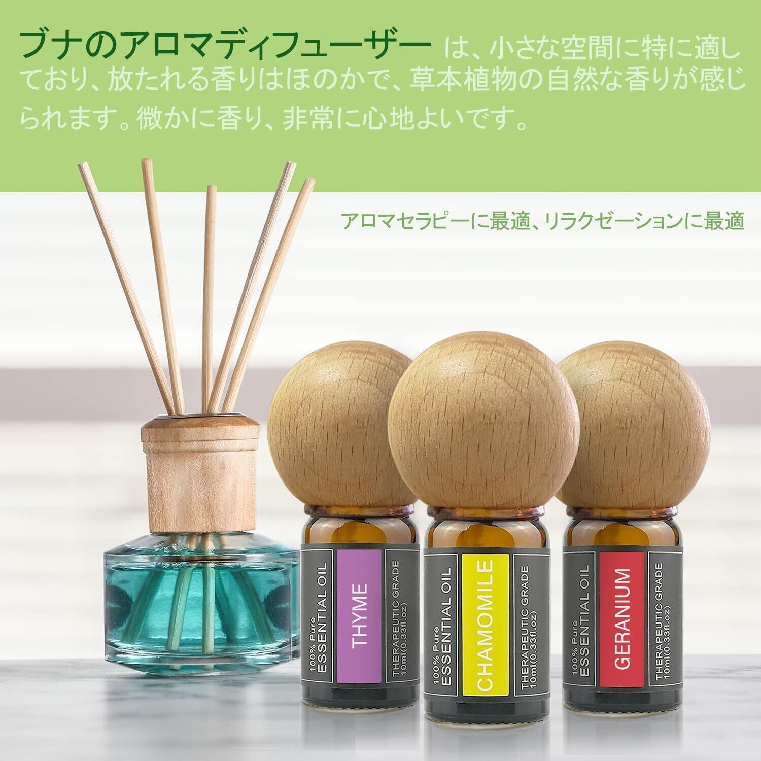 【100%天然植物エッセンシャルオイル】天然植物から抽出され、合成化学香料は一切含まれていません。【ご注意】天然植物精油は揮発しやすく、工業用の濃縮香料とは異なり、香りが長時間持続するわけではありません。 【香りと組み合わせ】詳細は画像およびテキスト説明をご覧ください。各香りと組み合わせについて詳しくご案内しています。 【ブナ材アロマディフューザー】アロマセットの組み立てと使用方法についても画像およびテキスト説明をご参照ください。各パーツは丁寧にデザインされています。