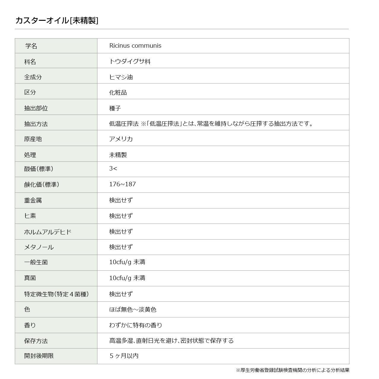 抽出方法 低温圧搾法※「低温圧搾法」とは、常温を維持しながら圧搾する抽出方法です。