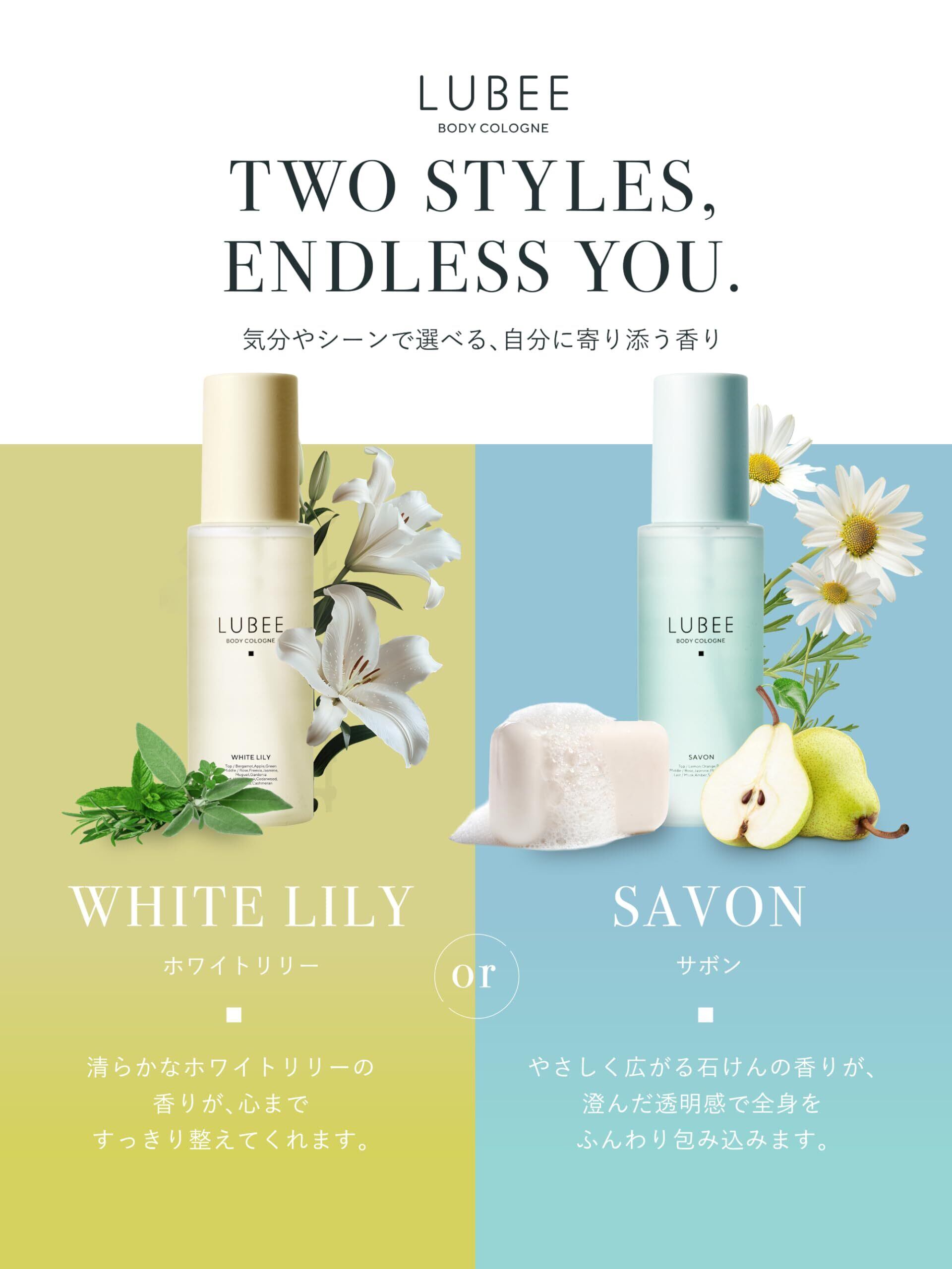 ✨【澄みわたる、軽やかで清潔感のある香りを肌に】 LUBEE サボン ボディコロンは、洗いたてのリネンに包まれたような、やさしく清潔感のある香りが肌にふんわりと寄り添います。レモンやオレンジのフレッシュで透明感のあるトップに、ローズやジャスミンのやわらかなフローラルが重なり、プラムのほのかな甘さが奥行きを添えます。ラストにはムスクとアンバーの穏やかな温かみが残り、澄んだ印象と心地よい余韻を演出します。