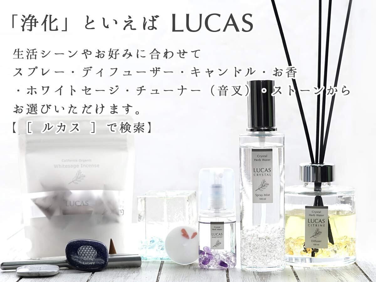 【使い方】「浄化スプレー LUCAS」本体に注いでご使用ください。 ○ お部屋などの空間を浄化する法方 空中に向けて強めにプッシュしてください。 使用頻度やプッシュの回数はお好みでご調整ください。 ○ソファやカーテン、服を浄化する法方 全体に吹きかけるようにしプッシュし浄化、香り付けしてください。 (事前に目立たない場所で試してからご使用ください) ○ 天然石やアクセサリーを浄化する法方 アクセサリー・天然石に直接スプレー後、布などで軽くふいてください。とても綺麗に輝きます。