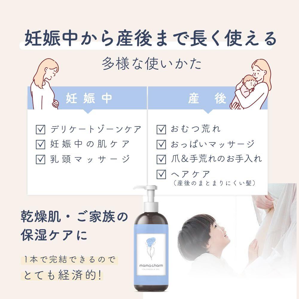 ️【mamacharm(ママチャーム)カレンデュラオイル】妊婦さんのボディケアに/出産前の会陰ケアに/デリケートゾーンの保湿ケアに/ベビーオイルとして/敏感肌・乾燥肌の保湿ケアに/国内生産で安心できる製品を使いたい方/出産祝いのプレゼントに/3種の潤い成分/グリセリン/トコフェロール/トウキンセンカ花エキス/カレンデュラオイル/キク科/薬用ハーブ ※キク科にアレルギーのある方はご使用をお控えください