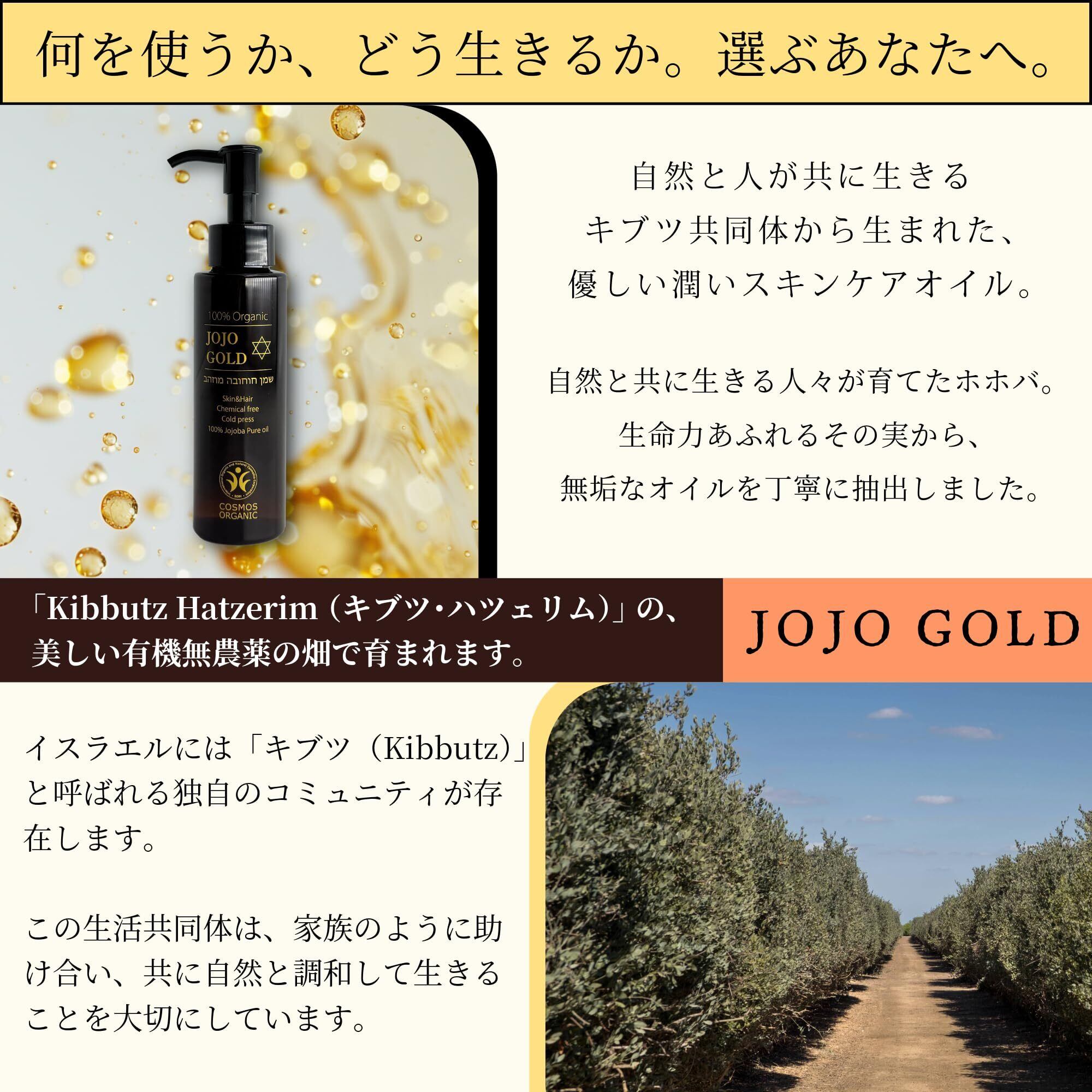 【世界基準のやさしさ。BDIH COSMOS認証取得】 JOJO GOLDは、ヨーロッパ発の厳格な国際オーガニック基準「BDIH COSMOS認証」を取得しています。 これは、合成成分を一切使わないことはもちろん、環境や動物、人にもやさしい製品づくりが評価された証。 肌につけるものに安心を求めるすべての方に、自信を持っておすすめできるオイルです。 ホホバオイルは酸化・光毒性・刺激の心配がない安全な天然オイルです。 アメリカFDAやCIRでも「non-toxic」「non-irritant」と評価されています。 少量が口に入っても問題ありませんが、食用油ではございません。 「どれを選べば安心?」と迷う方へ、確かな選択肢をお届けします。
