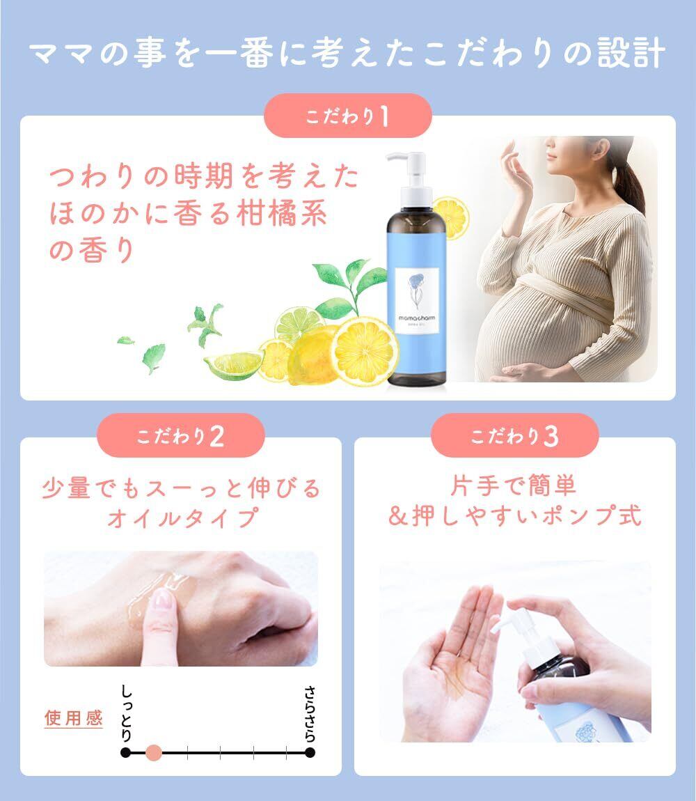 【植物由来100%のストレッチマークケアオイル】「心地よさ」にこだわったmamacharm(ママチャーム)ママオイル。敏感なマタニティ期でもストレスなく保湿ケア