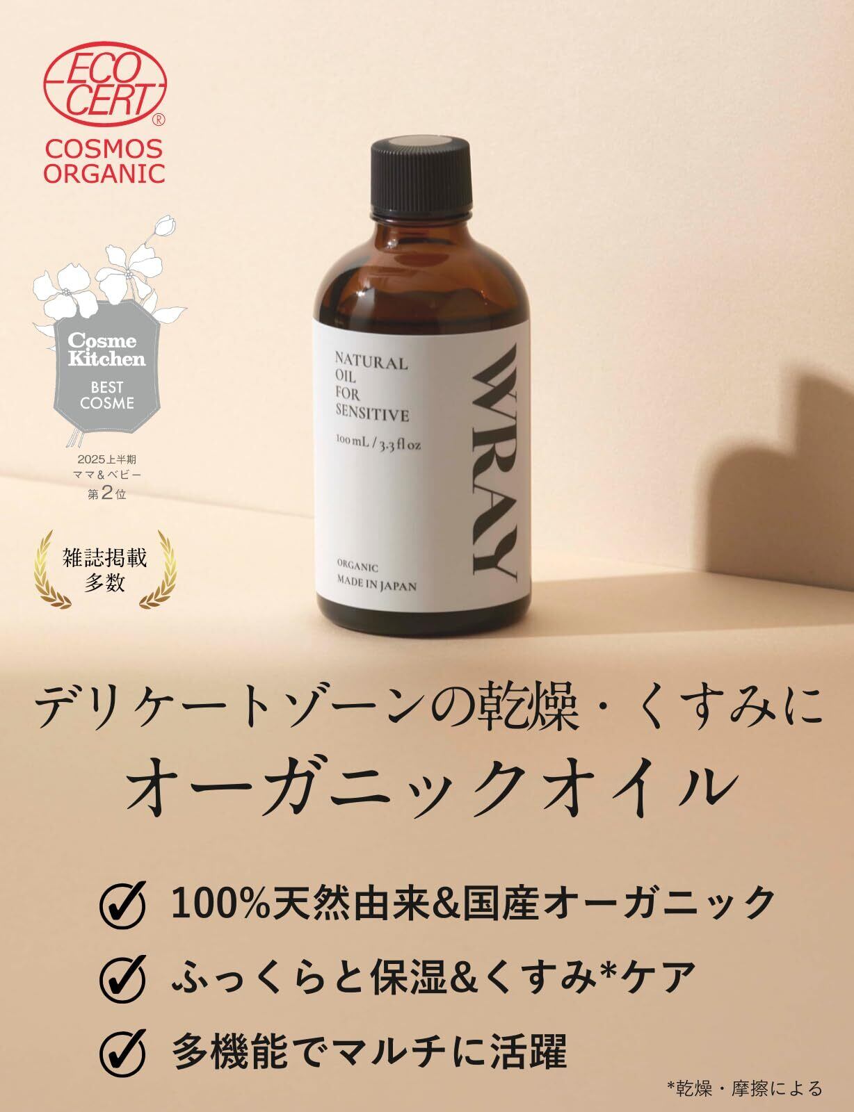 WRAY ナチュラルオイルフォーセンシティブ デリケートゾーン ケア 保湿 会陰マッサージ ボディオイル マッサージ 妊娠中 妊婦 マタニティ ボディケア 100ml 1本