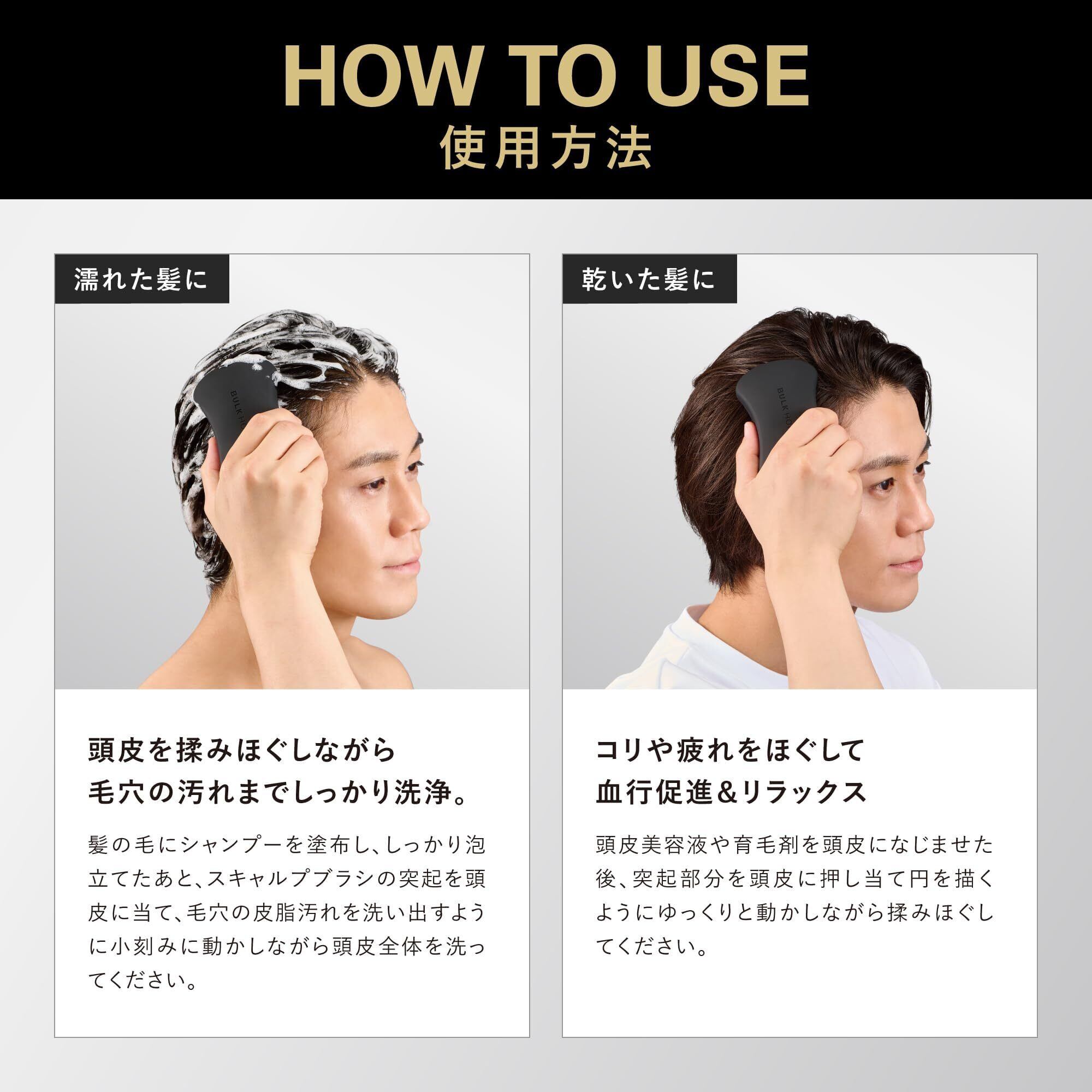 【男性の頭皮の特徴】皮脂や毛穴詰まり、臭いが気になりやすい男性の頭皮。頭皮の毛穴汚れや皮脂をケアするために設計した突起構造で、健やかな頭皮環境をサポート。