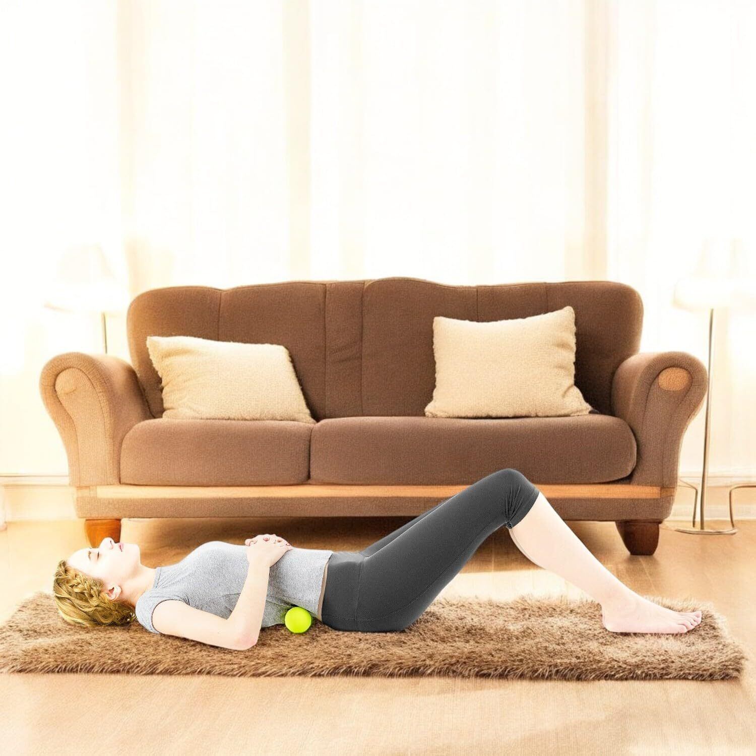 1. フォームローラーのように好きな場所に「ワコ」ボールを塗ります。 2. ボールを転がして筋膜を取り除いたり、閉じ込められたトリガーポイントを押したりします。 3. ストレッチボールとしても使えます。 4. 持ち運びにも十分な大きさ。